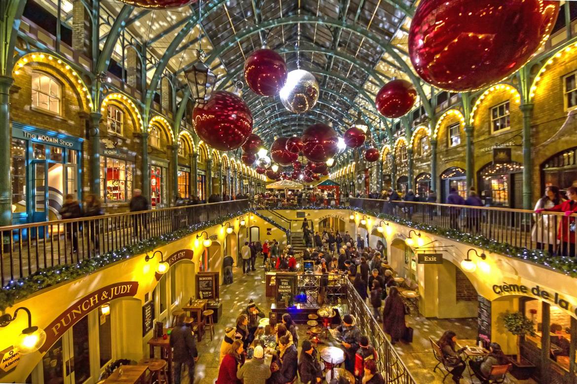 Covent Garden est l’endroit idéal pour faire ses courses de Noël. Avec plus de 200 magasins, vous trouverez sûrement votre bonheur, même pour les plus difficiles. De plus, la place regorge de décorations de Noël incluant entre autres un renne de près de 7 mètres de haut ! Le thème de cette année est le gui, vous pourrez ainsi faire vos courses tout en vous baladant dans les rues sous des couronnes de gui. De quoi échanger nombre de baisers romantiques !
