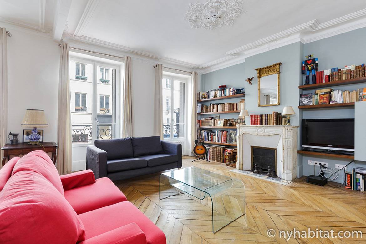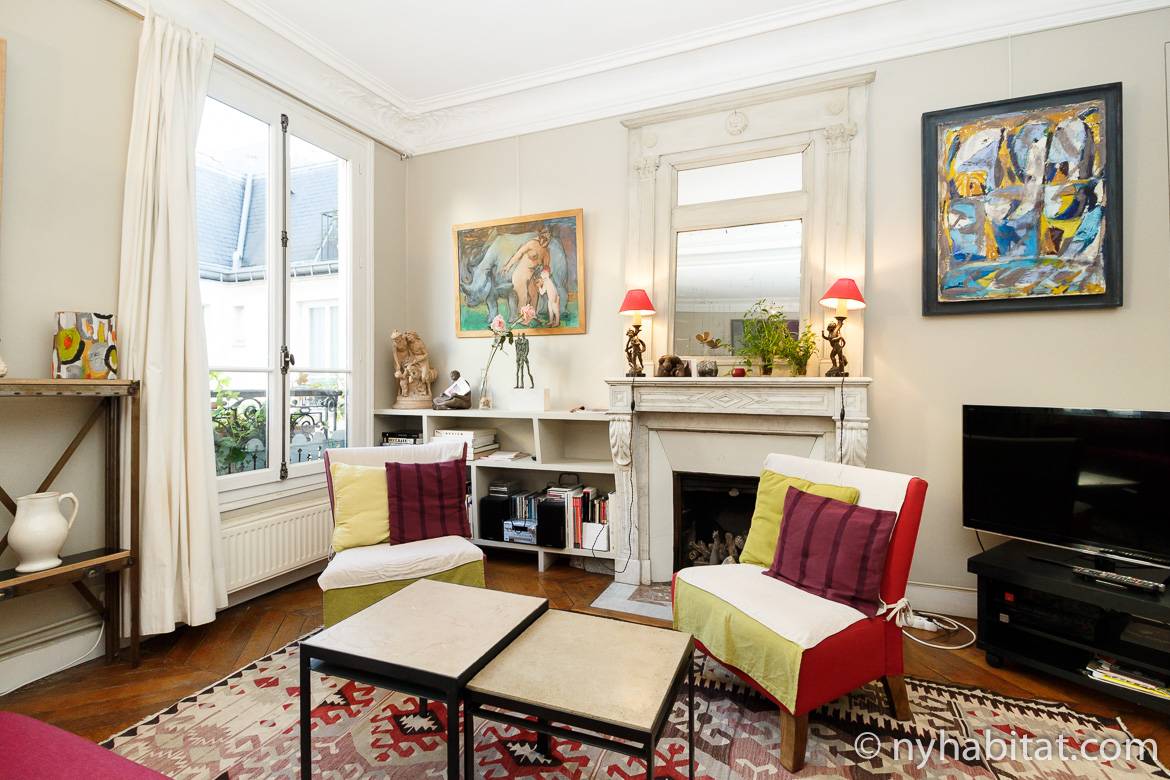 Cet appartement T3 de Montmartre représente une synthèse, tant des charmes du quartier que de l’âme parisienne en ces temps de festivals. Un séjour dans cette location saisonnière vous fera vous sentir privilégié, avec ses hauts plafonds aux moulures baroques, ses larges fenêtres aux rideaux délicats et son miroir à dorures trônant au-dessus de la cheminée décorative (un vrai réconfort en automne). Pour élever encore un peu le standing, admirez les beaux meubles de style classique, tout particulièrement dans la cuisine séparée. Ce sera le lieu idéal pour déguster une bouteille de vin rapportée de la fête des vendanges de Montmartre ! Dès la baisse des températures, vous apprécierez le repos salvateur offert par la chambre principale, qui possède sa propre cheminée décorative. Au final, l’abondance de livres, les instruments de musique, la télévision ainsi que les objets de collection disposés dans les bibliothèques encastrées du salon satisferont les attentes de tout visiteur des festivals parisiens !