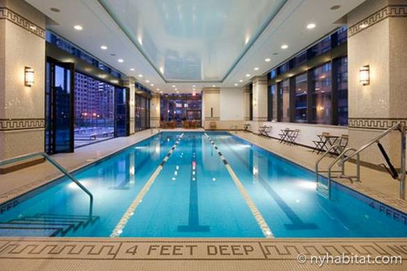 Affittare un appartamento con tutte le comodità, tra cui una piscina al coperto, è sempre un’ottima scelta. Fortunatamente, abbiamo molte opzioni del genere in lussuosi condomini, arricchiti di ogni comfort, in ognuno dei cinque quartieri di NY. Questo appartamento ammobiliato con una camera da letto nell’ Upper West Side si trova in un condominio nel quale è presente una piscina coperta ad acqua salata profonda circa 20 metri con due ettari di terrazza panoramica dove potrete rilassarvi e godervi la giornata.
