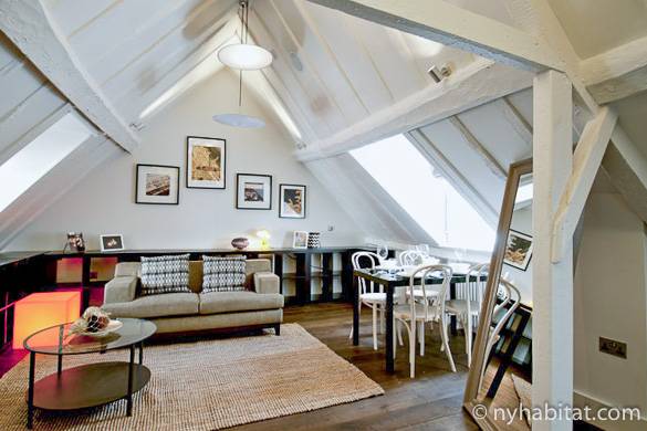 Organizar su propio pub crawl conlleva muchas caminatas y necesitará descansar sus pies al final del día. Opte por este apartamento dúplex de 4 habitaciones en Covent Garden, ¡y tendrá el alojamiento perfecto tras esas largas noches recorriendo la ciudad! Como el atractivo característico de algunos pubs de Londres, este ático presenta un salón con techos inclinados y vigas vistas, así como un par de tragaluces para crear un ambiente acogedor. A esto se le suman una chimenea y 3 sofás que aportan más calidad al ambiente. La cocina incluye una mesa de comedor para 8 personas, perfecta para un snack de última hora antes de retirarse a las habitaciones (¡cada una acoge a 2 personas!). Además de eso, el apartamento es perfecto para recibir amplios grupos gracias a sus grandes comodidades, incluida una lavadora y secadora, y un dispositivo de seguridad para garantizar su tranquilidad. En Covent Garden estará en el histórico West End, bordeando todos nuestros barrios favoritos de pubs y vida nocturna, perfecto para disfrutar de una pinta improvisada.