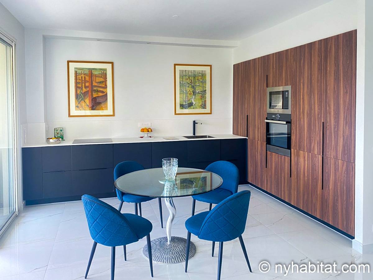 For example, this furnished 3-bedroom vacation rental in Nice offers the comfort of a home alongside high-end amenities. It features a fully equipped kitchen for preparing your own meals, as well as luxury additions like a private balcony, a jacuzzi, a swimming pool, and more, all aimed at making your stay on the French Riviera as enjoyable as possible.