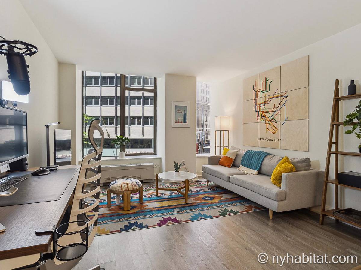 The Financial District may surprise you; it’s an exciting area of the city in which to live and balances hard work with plenty of opportunities to explore. If you dream about making the Financial District your temporary home, renting a furnished apartment rental in the Financial District might be a wise idea. Living in an apartment offers the personalized experience of being able to explore the city at your own pace and effortlessly blend in with the local way of life. The freedom to cook at home, wake up and depart when you please, and work remotely is all possible in a furnished apartment. Many are also equipped with extra storage for longer stays, laundry facilities for keeping clean, and wireless internet for staying connected. This furnished studio apartment in the Financial District is the perfect example of an ideal place to work from home.