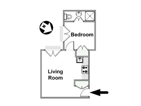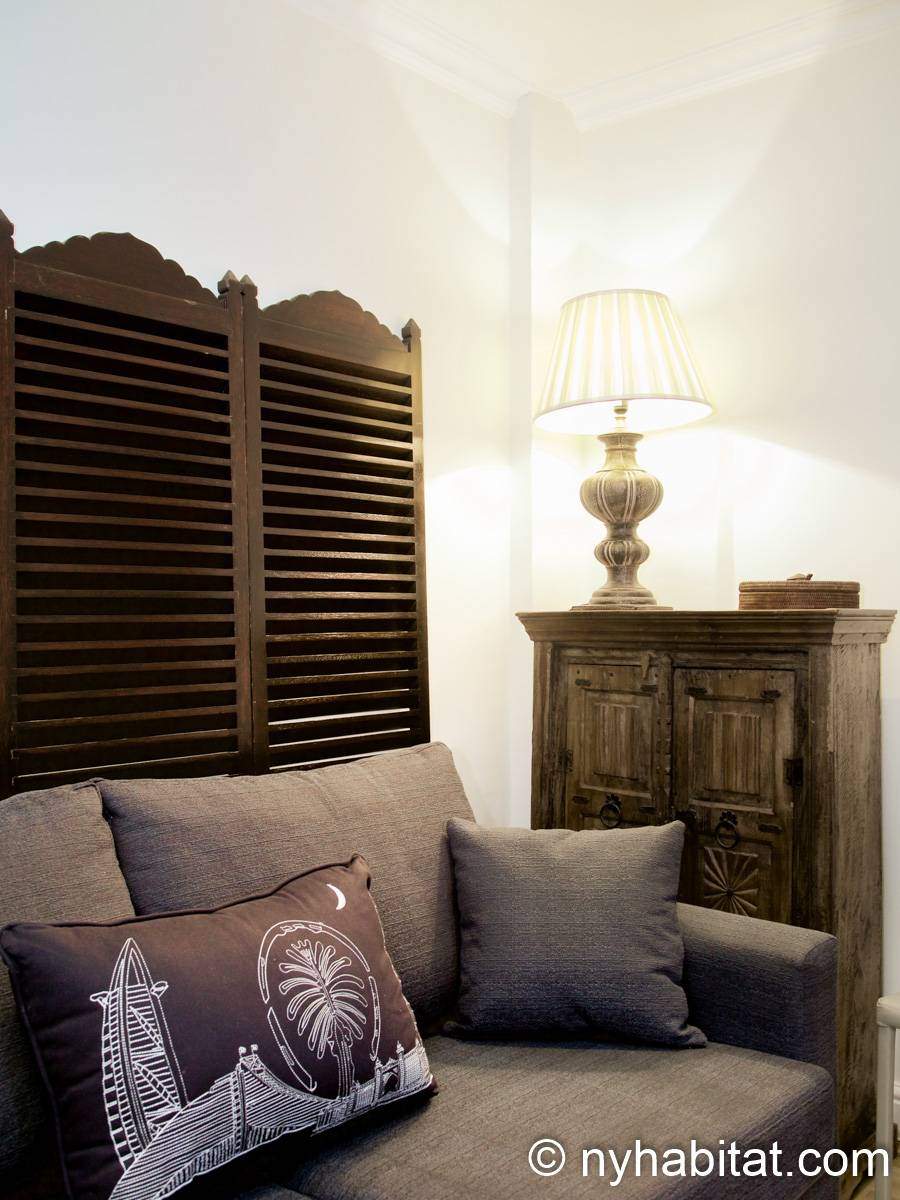 Diese voll ausgestattete 2-Zimmer-Wohnung mit Parkettboden hat ein modernes Design. Zu Ihrem Komfort können Sie im Wohnzimmer auf dem Sofa Platz nehmen und fernsehen oder am Esstisch zu Abend essen. Die offene Küche der Ferienwohnung ist mit allen notwendigen Annehmlichkeiten wie Mikrowelle, Toaster, Geschirrspüler und Kühlschrank ausgestattet. Das gemütliche Schlafzimmer der Unterkunft enthält ein Doppelbett und ein großes Fenster, das natürliches Licht hereinströmen lässt.