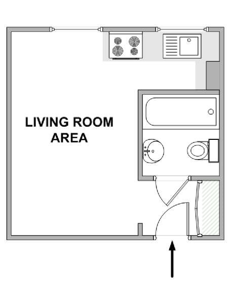 Diese Studiowohnung liegt im 5. Stock und ist nach Norden ausgerichtet; für einfachen Zugang hat das Gebäude einen Aufzug. Mit einer Fläche von 25 m² eignet sich die Wohnung sehr gut für 1-2 Gäste, und Sie werden alles in einfacher Reichweite vorfinden. Die Mietwohnung besteht aus einem Wohnzimmer, einer offenen Küche und einem voll ausgestatteten Badezimmer. Im Wohnzimmer gibt es ein Doppelbett, ein Sofa, einen Tisch für zwei Personen, einen Beistelltisch mit einem Flachbildfernseher (mit Videorecorder, DVD-Player und Kabelanschluss) und außerdem ein Telefon. Die Küche ist mit einem Kühlschrank, zwei Herdplatten, einem Wasserkocher und sogar einem Toaster ausgestattet. Wenn Sie waschen möchten, finden Sie hier auch eine Waschmaschine und einen Trockner. Im Badezimmer gibt es eine Badewanne mit einer an der Wand montierten Dusche.