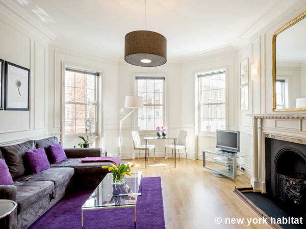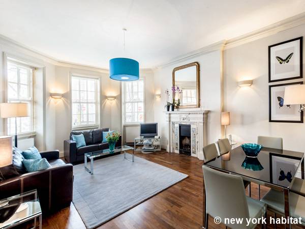 Die 2-Zimmer-Wohnung vereint die Vorzüge eines Luxushotels und einer möblierten Wohnung und eignet sich somit gleichermaßen perfekt für längere und kürzere Aufenthalte in London. Das Wohnzimmer ist mit einem Sofa, Kabelfernsehen und einem Esstisch ausgestattet, auf dem sich Selbstgekochtes aus der vollausgestatteten offenen Küche genießen lässt. Das Schlafzimmer verfügt über ein großes Doppelbett, in dem Sie sich wie ein König fühlen werden, sowie ein weiterer Fernseher mit Kabelanschluss und einem Schrank mit reichlich Stauraum.