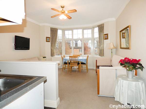 Die 2-Zimmer-Wohnung besitzt vier große Fenster, welche das offene Wohnzimmer mit natürlichem Licht versorgen und die Straße überblicken. Die weißen Wände werden durch subtile und ruhige Dekorationen aufgepeppt und besitzen einen Flachbildkabelfernseher und einen Deckenventilator mit Beleuchtung. Das Wohnzimmer ist möbliert mit zwei Sofas, welche sich in Betten umwandeln lassen und so Gäste unterbringen können, und einem Esstisch mit vier Stühlen. Das Wohnzimmer führt in die modern eingerichtete, offene Küche mit Backofen, Kühl-/Gefrierschrank, Mikrowelle, Kaffeemaschine und Toaster. Das Schlafzimmer ist ausgestattet mit zwei Fenstern, welche für viel frische Luft sorgen, einem großen Doppelbett, Bettwäsche und Klimaanlage. Das Badezimmer ist eingerichtet mit begehbarer Dusche, WC und Handtüchern.