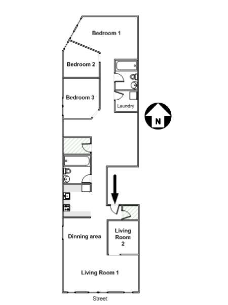 Die 4-Zimmer-Wohnung bietet hohe Decken und Hartholzböden. Annehmlichkeiten beinhalten eine Waschmaschine/Trockner, Flachbildfernseher, Queen-Schlafsofa und zwei Einzelbetten. Zwei begehbare Kleiderschränke (der Traum eines jeden New Yorkers!) sind für praktische Aufbewahrungen verfügbar. Diese Wohnung weist zwei Badezimmer auf, von denen beide eine Badewanne und eine Dusche haben. Drahtloses Internet und Klimaanlage sind verfügbar.