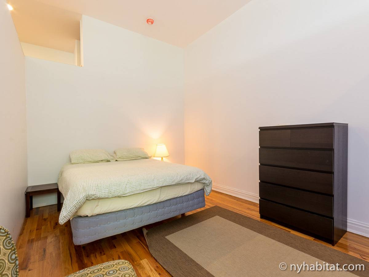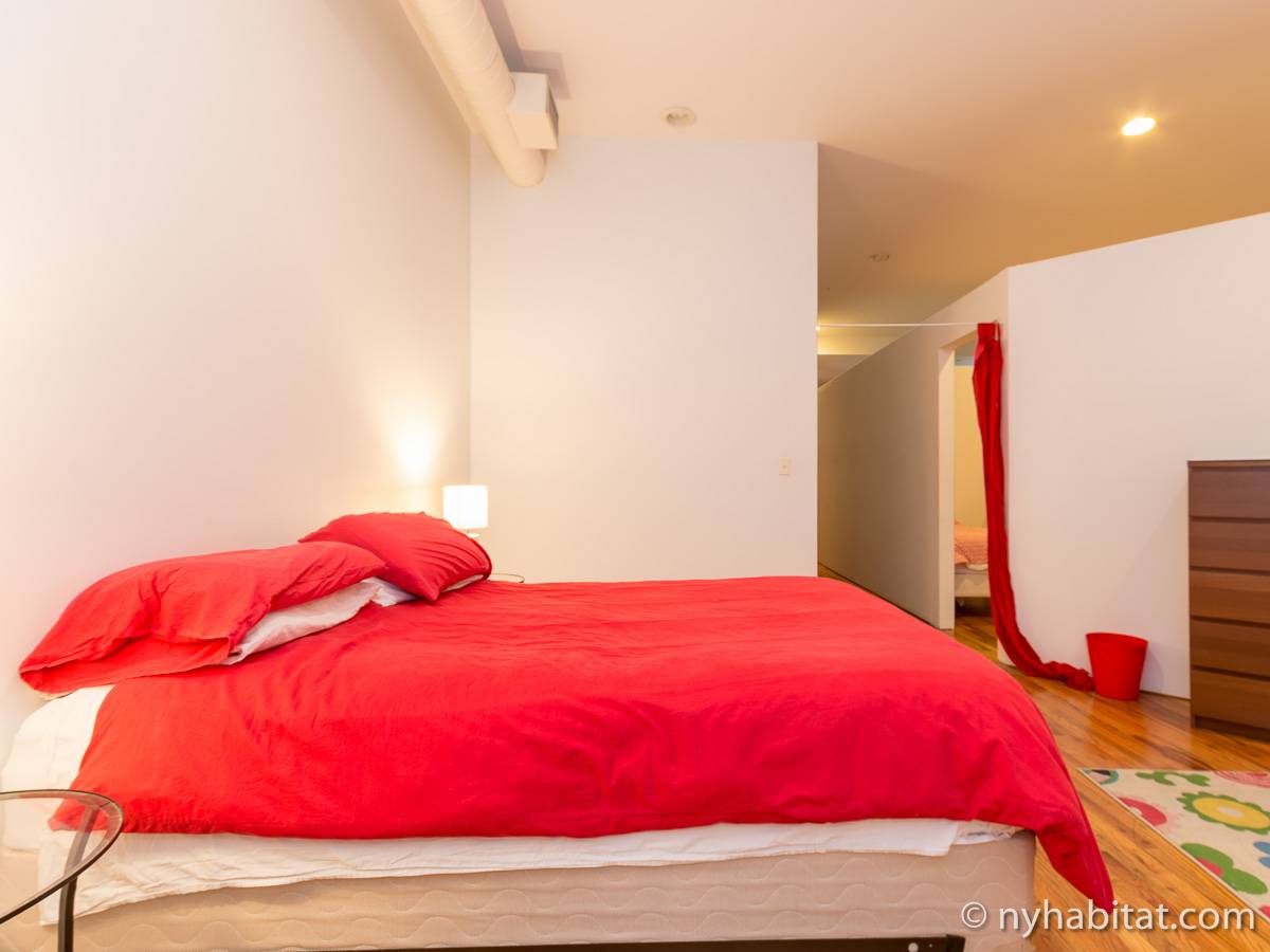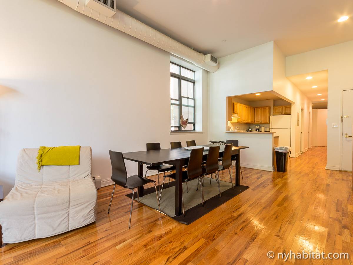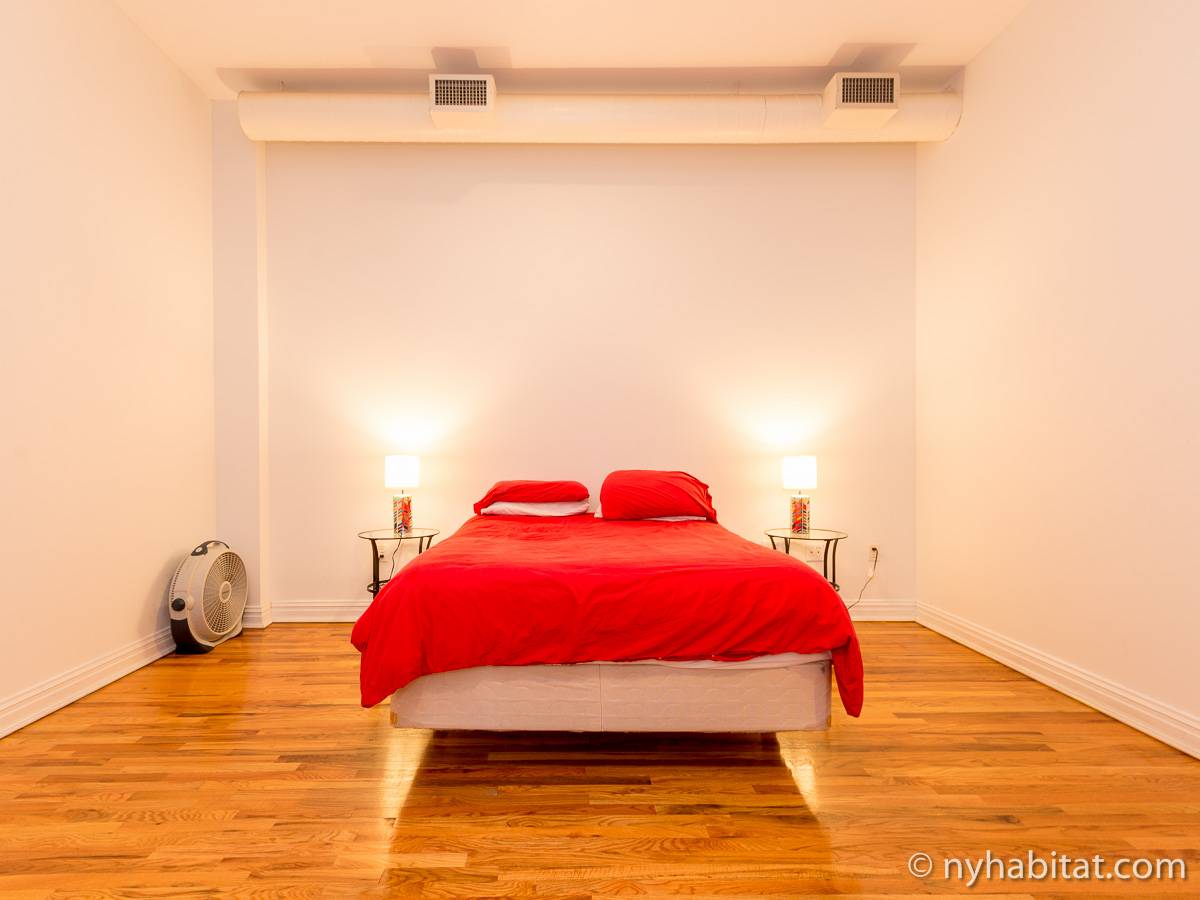 Diese möblierte 4-Zimmer-Loftwohnung liegt im Viertel East Harlem in Upper Manhattan! Die Loftwohnung liegt in der 2. Etage (entspricht in Europa der 1. Etage) eines 4-stöckigen umgebauten Industriegebäudes mit Aufzug und Buzzer/Gegensprechanlage-Sicherheitssystem für Privatsphäre sowie Sicherheitskameras, die den Gebäudeeingang, das Foyer und den Aufzug überwachen.