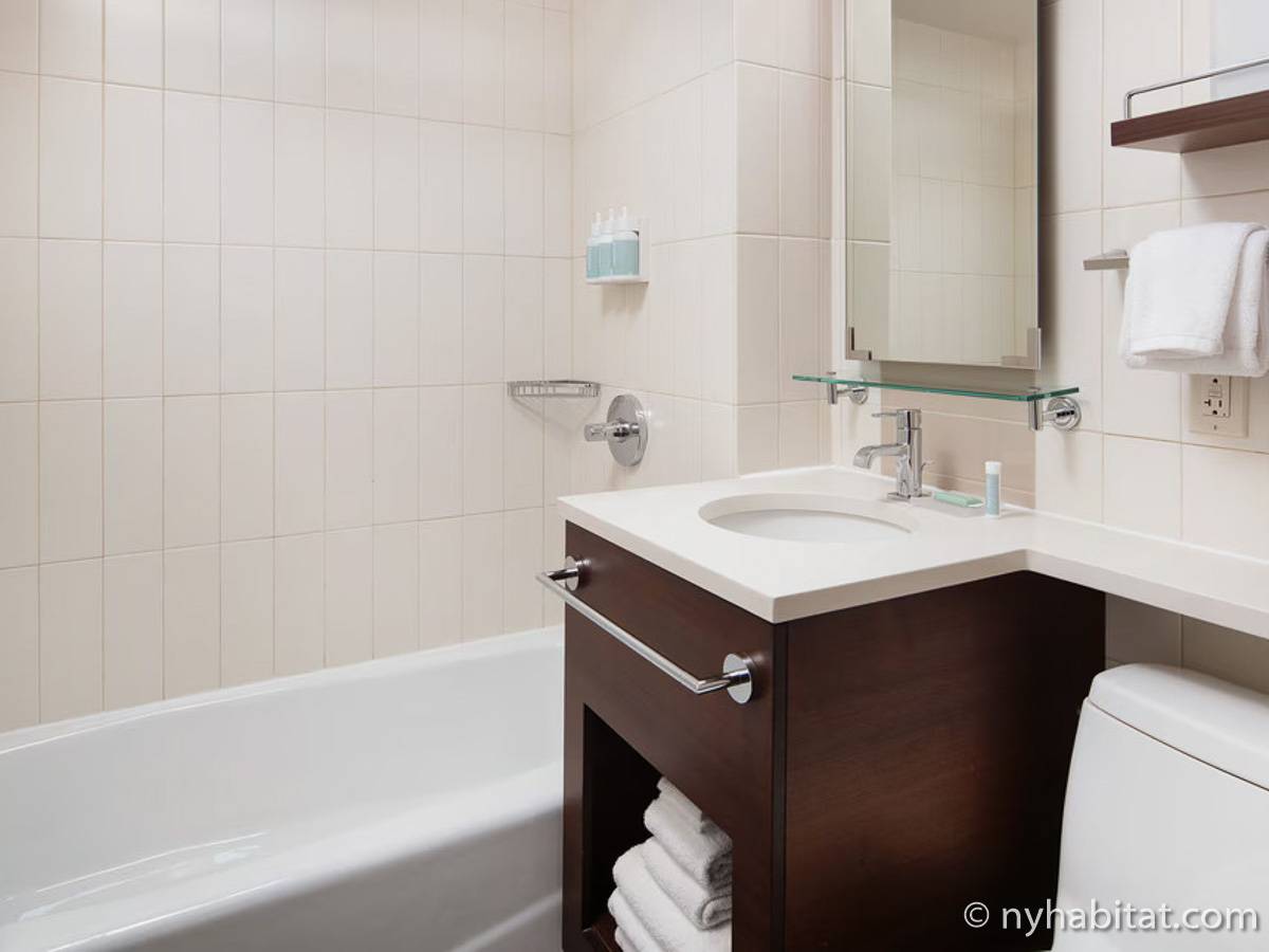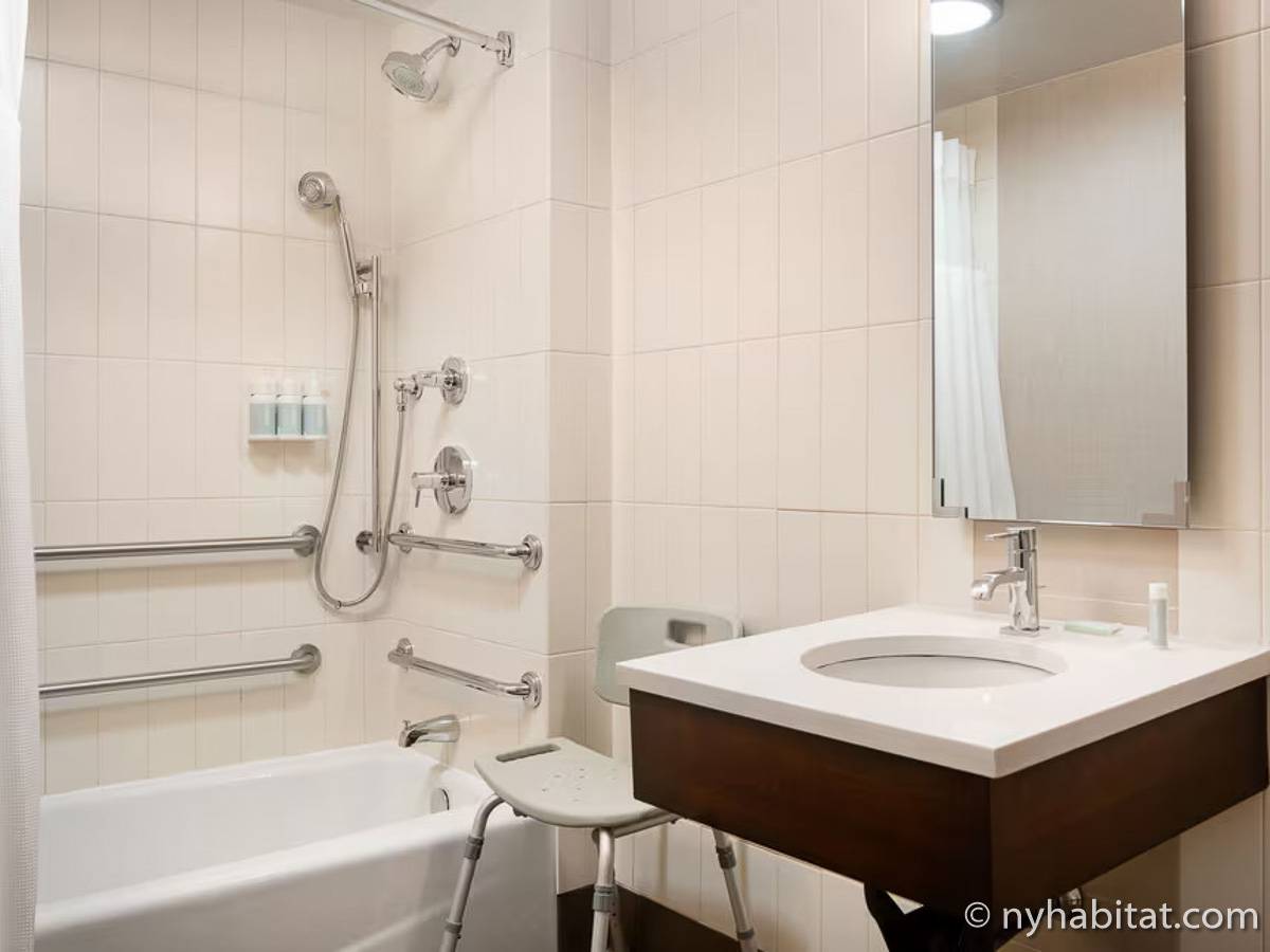 Willkommen in Midtown East – dem Herzen Manhattans, wo sich touristenfreundliche Ziele wie der Times Square und das Rockefeller Center befinden! Hier, in der Mitten von allem, gibt es ein 17-stöckiges Gebäude mit Fahrstuhl, in dem vollmöblierte 2-Zimmer-Wohnungen zur Miete angeboten werden. Sind Sie ein Weltenbummler, der nach allen Privilegien und Annehmlichkeiten wie in einem Hotel sucht, sich jedoch gleichzeitig auch nach der Gemütlichkeit eines richtigen Zuhauses sehnt? Dann ist das hier vielleicht die beste Option für Sie! Diese Ferienwohnung mit Hotelservice liegt auf der 48th Street und Lexington Avenue und bietet ein Fitnessstudio, Parkplätze (gegen eine Gebühr), ein Internetcafé und einen Vollzeit-Portier, der Sie begrüßen wird. Ihr Aufenthalt beinhaltet ebenfalls kostenloses Frühstücken im Speiseraum und eine kostenfreie Ausgabe der USA Today oder des Wall Street Journals in der Lobby.