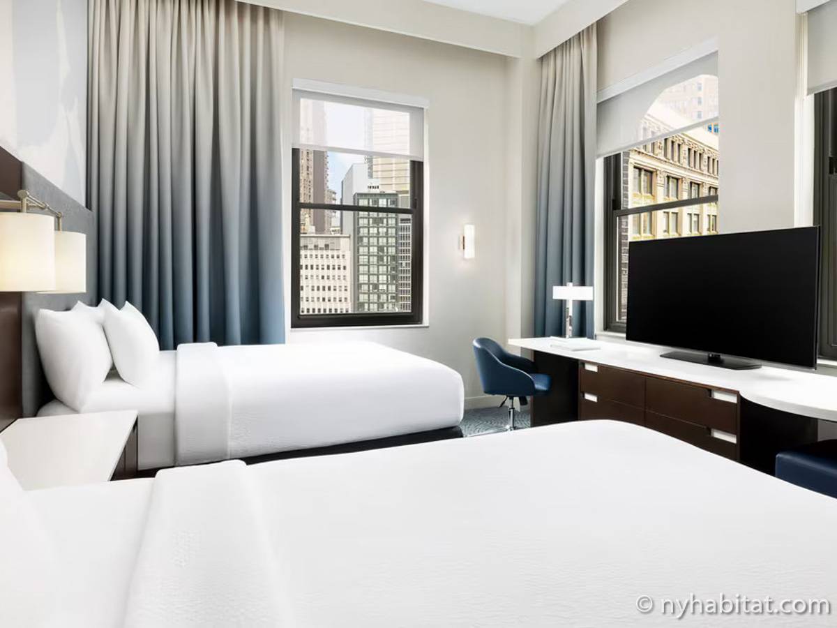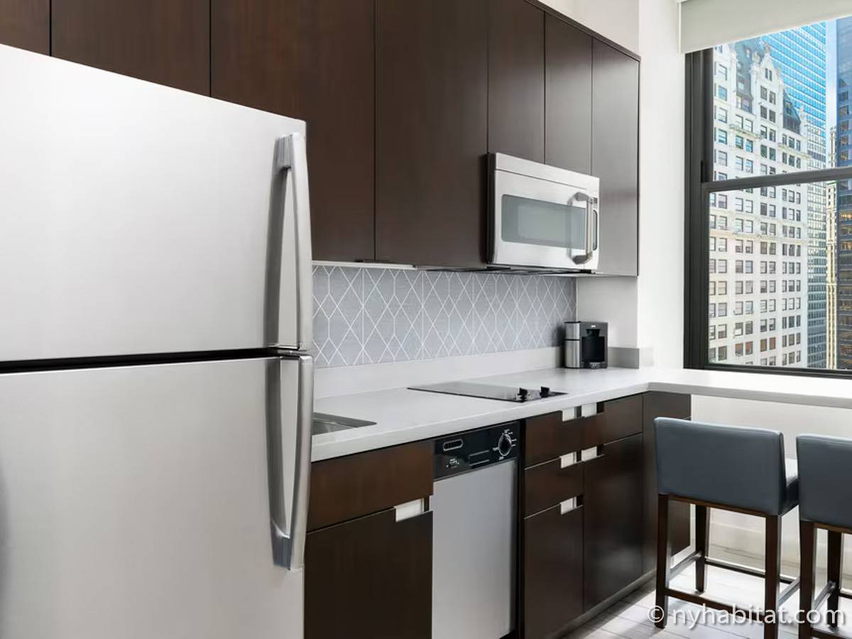 Willkommen in New Yorks Financial District – dank der riesigen Bauten ist das geschäftige Finanzzentrum der Stadt schon von weitem zu erkennen! Wohnen Sie in einer Ferienwohnung mitten im Trubel am Broadway und Maiden Lane in einem luxuriösen neunzehnstöckigen Gebäude mit Aufzug, Concierge und einem Fitnessraum.