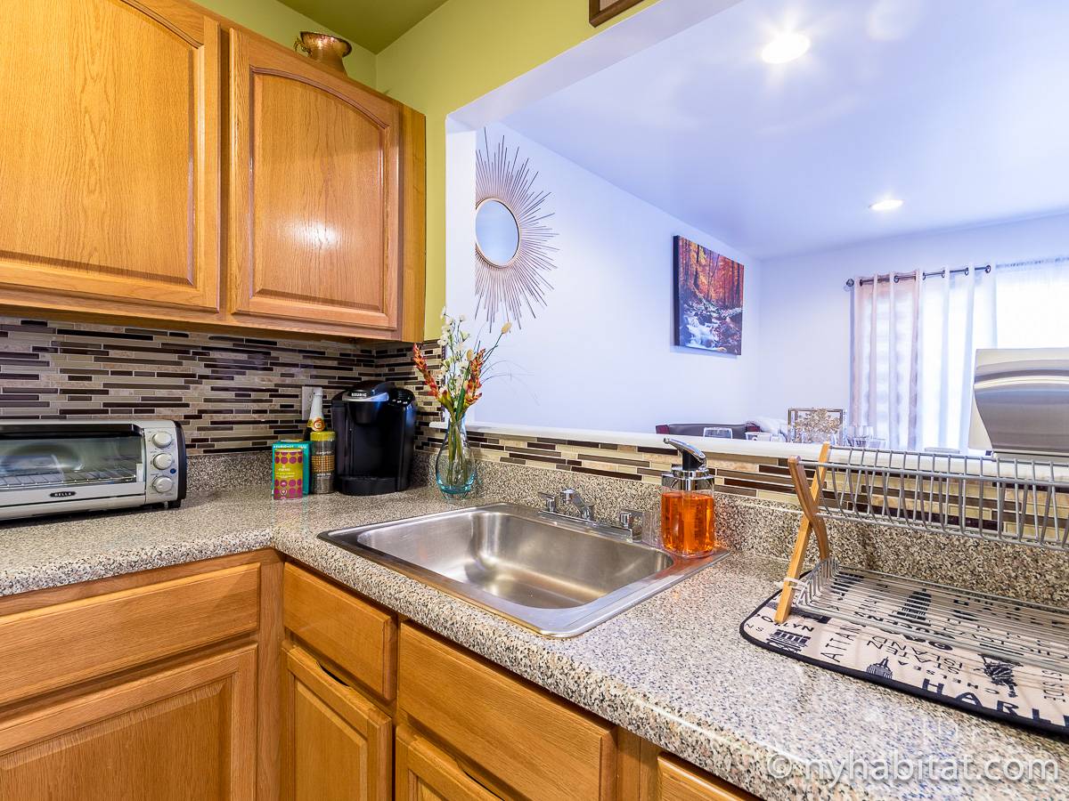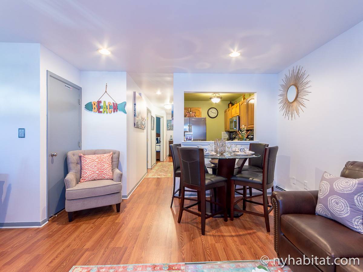 Willkommen in dieser möblierten 3-Zimmer-Wohnung zur Kurzzeitmiete in New York City. Sie finden die Ferienwohnung im Stadtbezirk Queens, in Far Rockaway, im Erdgeschoss (entspricht in Europa dem Erdgeschoss) eines Hauses in der Nähe der Hillmeyer Avenue und der Beach 69th Street.
