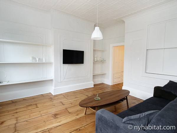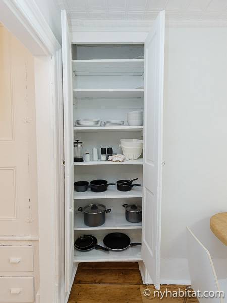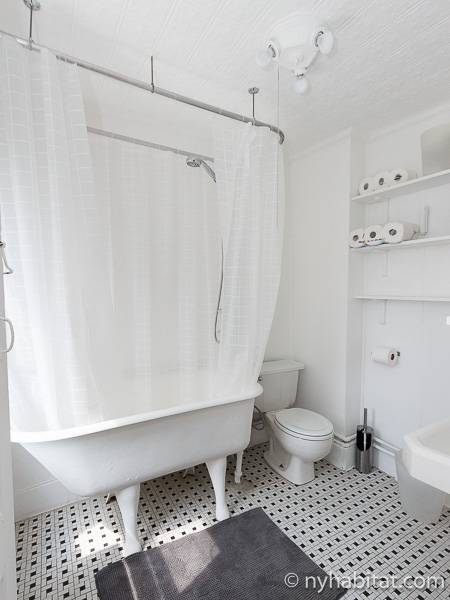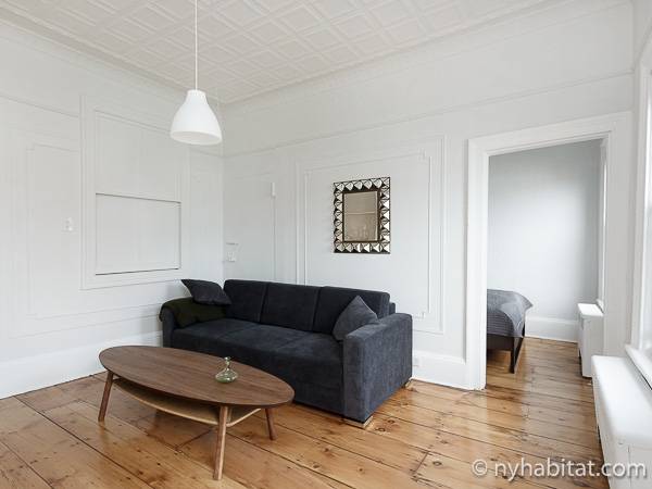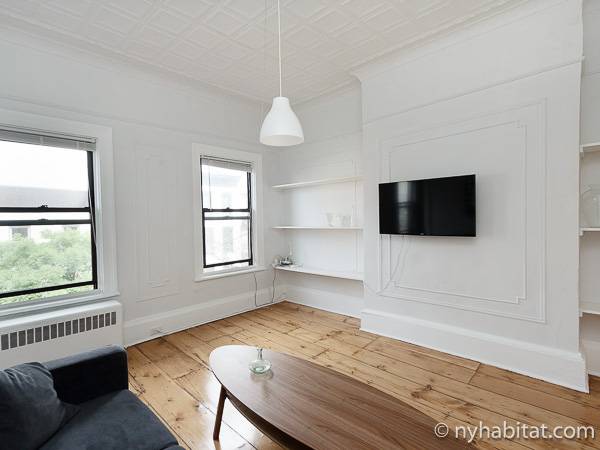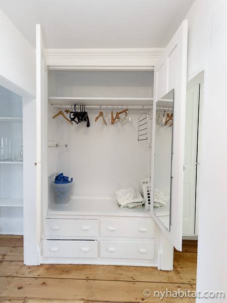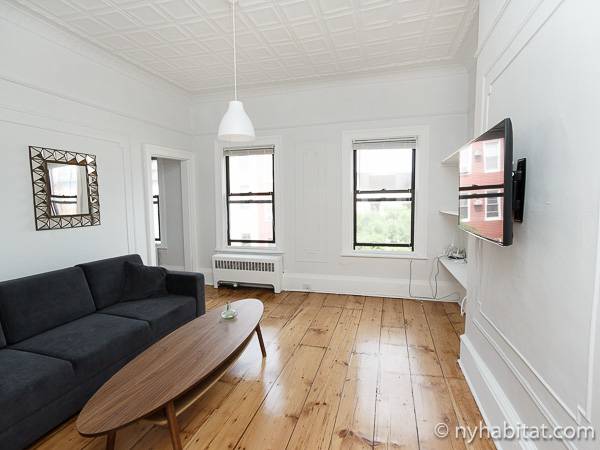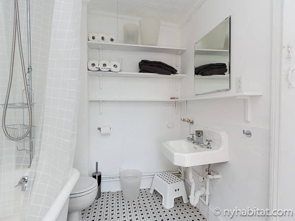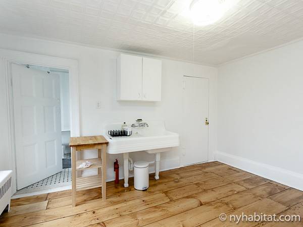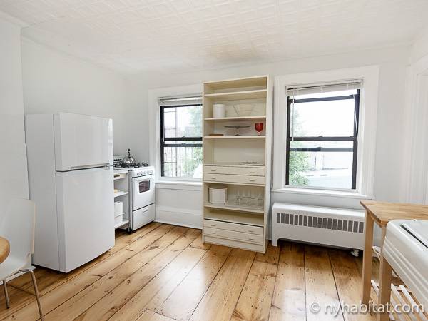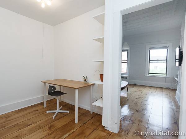 Diese New Yorker Studiowohnung verfügt über Parkettböden. Die große Küche der Wohnung ist durch die zwei Fenster sehr hell, die dafür sorgen, dass die Morgensonne hindurchscheint und der Raum sehr hell ist. Rechts von der Küche finden Sie das geflieste Badezimmer mit einer Badewanne mit europäischem Ambiente, einer Dusche und einem Fenster. Auf der anderen Seite der Küche finden Sie eine separate Bürofläche mit viel Platz im Regal und im Schrank, um alle Ihre Sachen unterzubringen! Das Büro ist zum großen Wohnzimmer der Mietwohnung gerichtet und enthält ein Schlafsofa, einen Flachbildfernseher mit Satellitenempfang sowie zwei Fenster mit Blick auf die Bedford Avenue. Wenn Sie weiter durch das Wohnzimmer gehen, befinden Sie sich im zweiten Wohnzimmer, das über ein Doppelbett und ein Fenster verfügt.