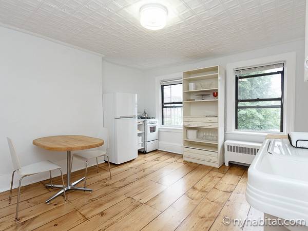 Stellen Sie sich vor, wie Sie in diese kürzlich renovierte Alkoven-Studiowohnung auf der Bedford Avenue zwischen N 8th Street und N 9th Street in Williamsburg, Brooklyn in einem Gebäude aus dem Jahr 1901 einziehen. Die Wohnung in Williamsburg im 3. Stock (entspricht dem 2. Stock in Europa) ist schlicht eingerichtet und bietet eine Nord-West-Ausrichtung zur Straße.