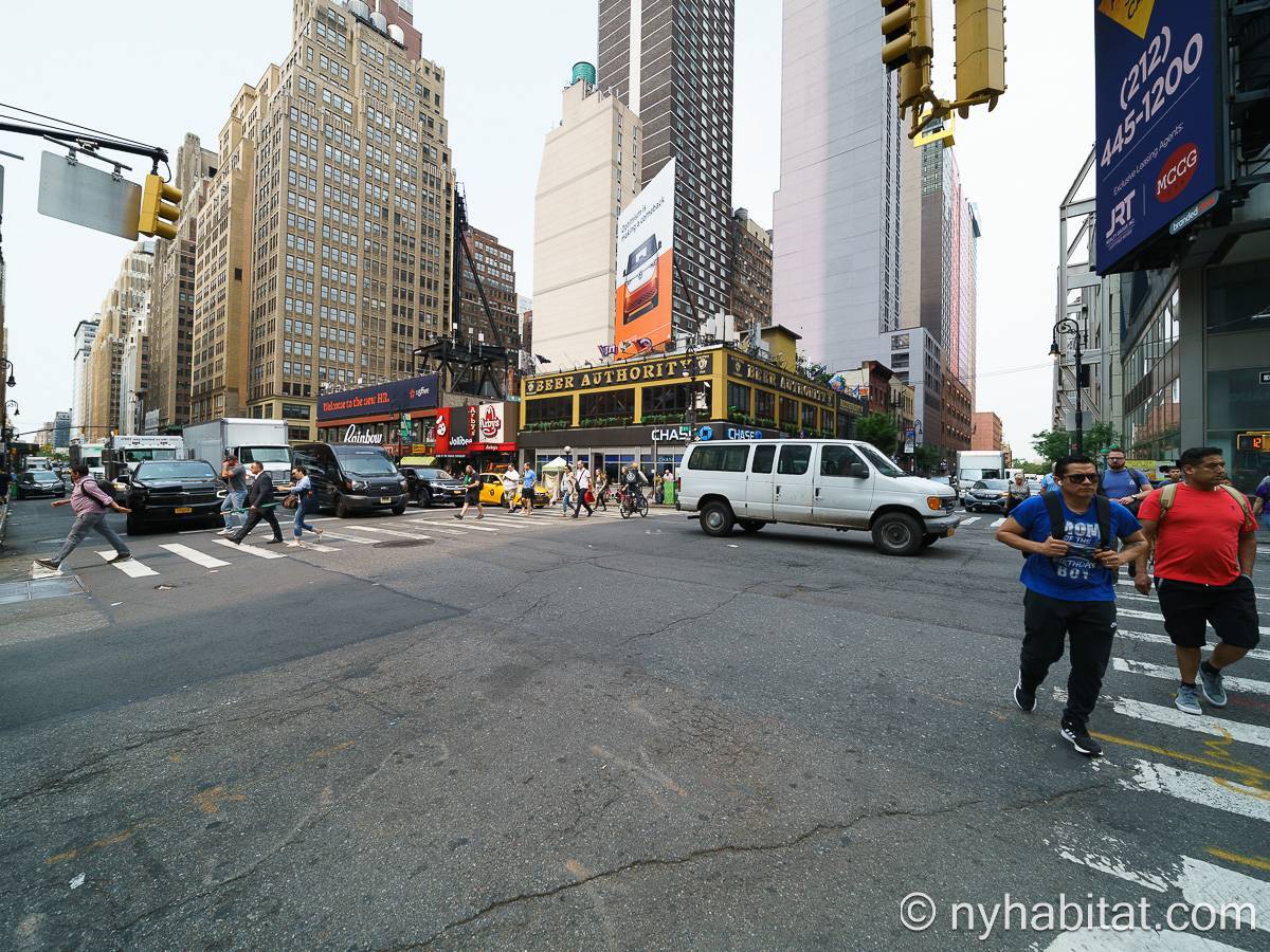 Begeben Sie sich direkt ins Herz von New York City. Mit dem Madison Square Garden, dem Bryant Park, der Theater Row und dem Times Square im Radius von 650 Metern um die Wohnung herum haben Sie Zugang zu einigen der beliebtesten Attraktionen der Stadt. In der Umgebung befinden sich mehrere Waschsalons, die höchstens 800 Meter entfernt sind.