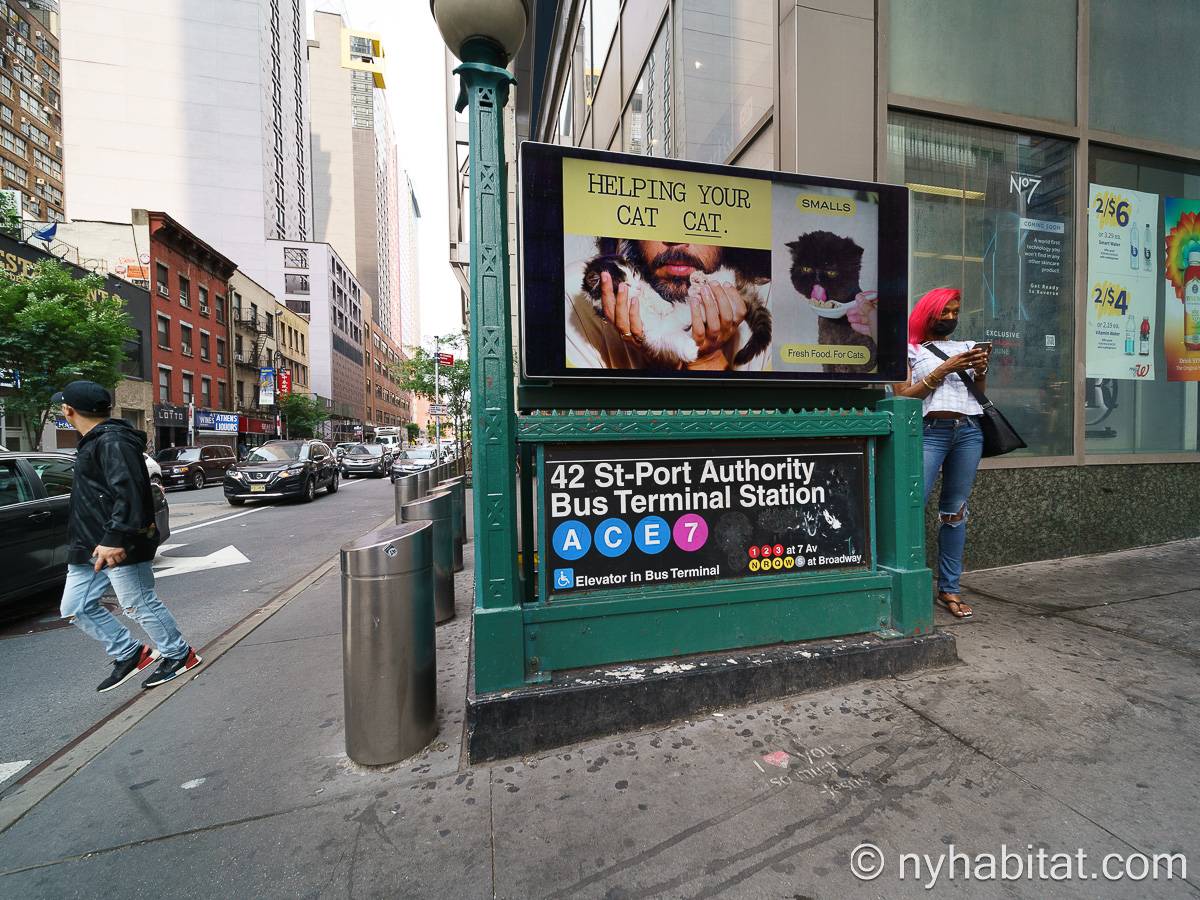 Auf der Suche nach einer U-Bahn-Station? Nur 150 Meter entfernt befindet sich die Station 42nd Street / 8th Avenue Port Authority Bus Terminal. Diese Station bedient die U-Bahnlinien A, C und E. 450 Meter entfernt liegt die Station 42nd Street / 7th Avenue / Broadway Times Square. Diese U-Bahn bedient die Linien 1, 2, 3, 7, N, Q, R und S.
