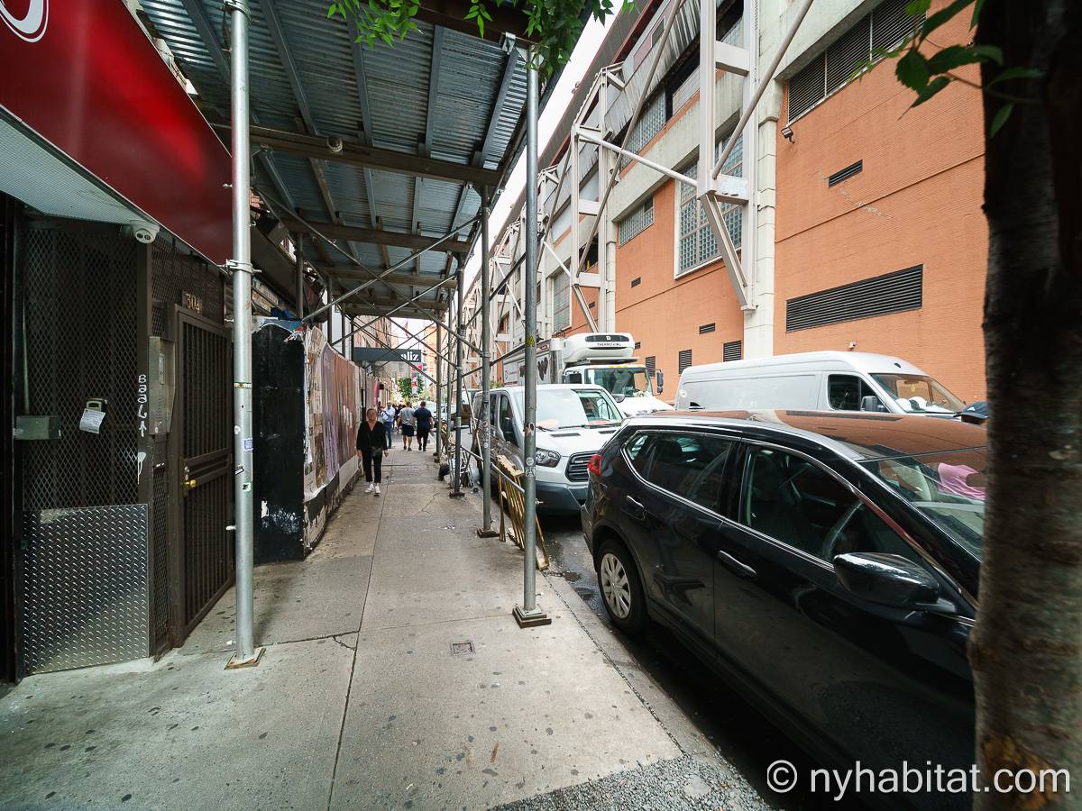 Diese 2-Zimmer-Wohnung mit ca. 23 m² Fläche liegt zwischen der 40th Street und der 8th Avenue in Midtown West. Das Gebäude verfügt über eine Sicherheitsanlage, jedoch keinen Aufzug. In der Wohnung finden Sie ein offenes Wohnzimmer, Parkettboden und eine Wohnküche. Die Küche ist mit praktischen Geräten wie Herd mit Backofen, Kaffeemaschine, Mikrowelle, Toaster und Kühlschrank ausgestattet. Das einzige Schlafzimmer verfügt über ein Doppelbett, einen Fernseher, eine Klimaanlage und einen Nordbalkon. Das einzige Badezimmer ist mit weißen Fliesen ausgestattet und verfügt über eine Badewanne/Dusche-Kombination und einen Spiegelschrank.