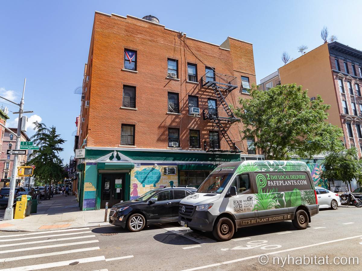Diese komplett möblierte Wohnung mit 2 Schlafzimmern und 1 Badezimmer befindet sich im 6. Stock (5. Etage in Europa) eines Gebäudes mit Sicherheitssystem. Um diese 3-Zimmer-Wohnung zu erreichen, können Sie sowohl einen Aufzug als auch eine Treppe nutzen. Diese 50 m² große Mietwohnung befindet sich an der Kreuzung East 3rd Street und Avenue C. Diese 3-Zimmer-Wohnung in New York City befindet sich im Stadtteil East Village in Manhattan.