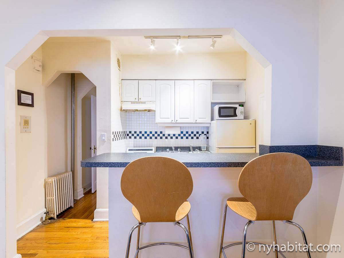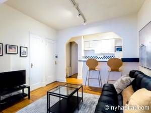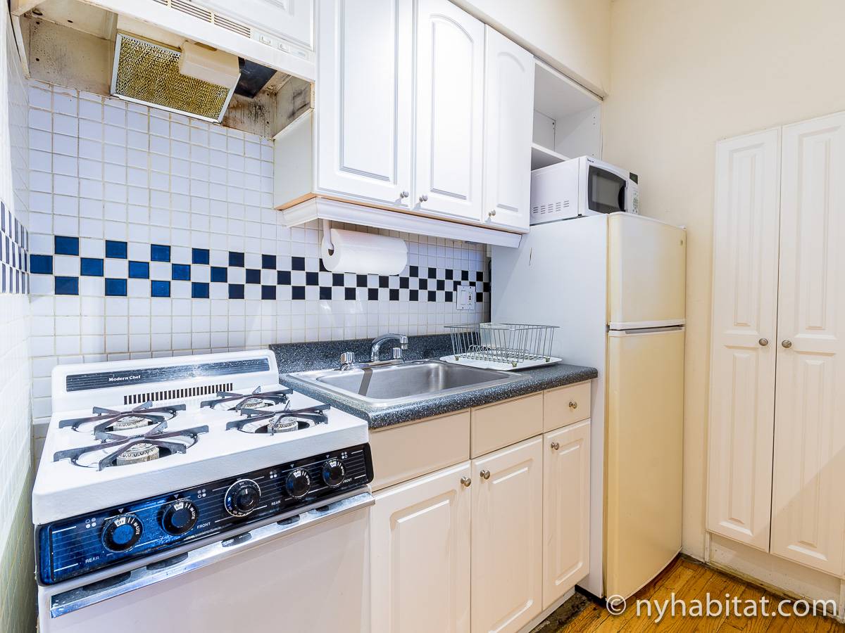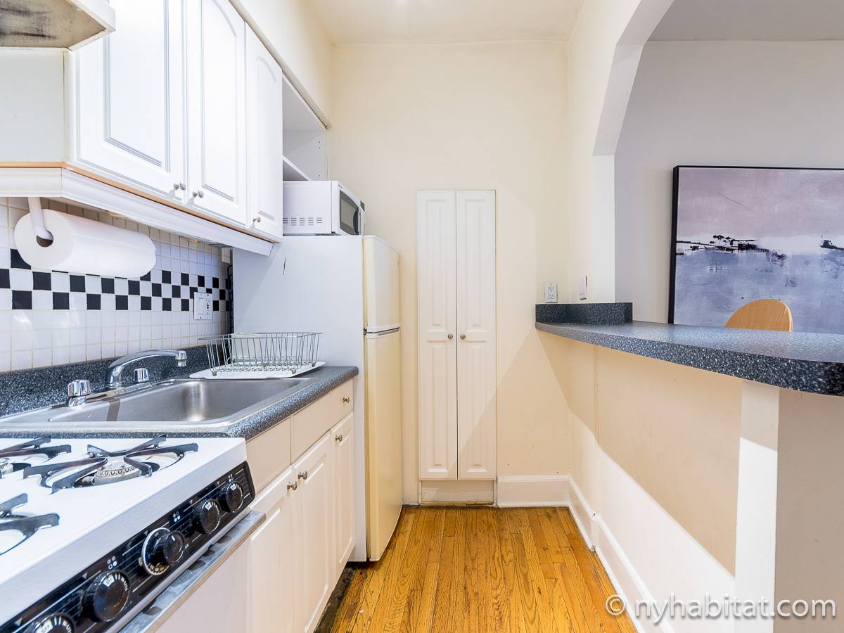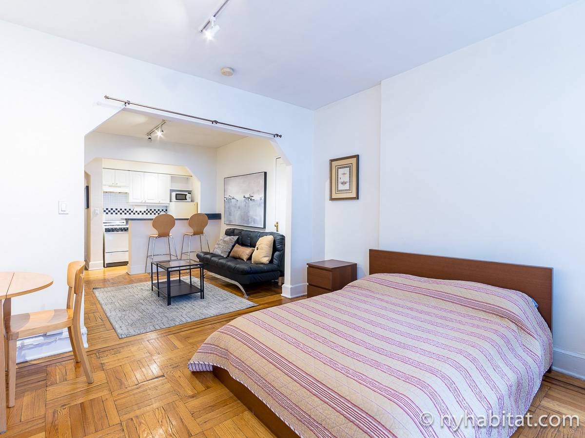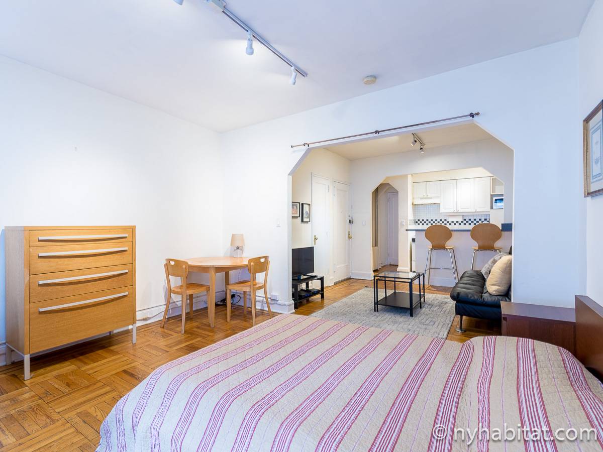 Finden Sie Ihr Urlaubszuhause an der Upper East Side von Manhattan in dieser Studiowohnung mit Alkoven. Diese Studiowohnung liegt an der East 61st Street und First Avenue und die Wohnung befindet sich im 4. Stock (entspricht in Europa dem 3. Stock) eines fünfstöckigen Gebäudes. Im Gebäude finden Sie originale Elemente, dazu gehören gewölbte Torbögen und Holzböden im Korbflechtmuster.