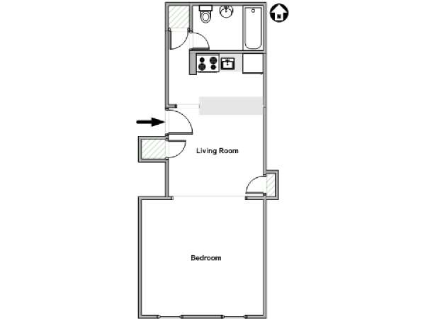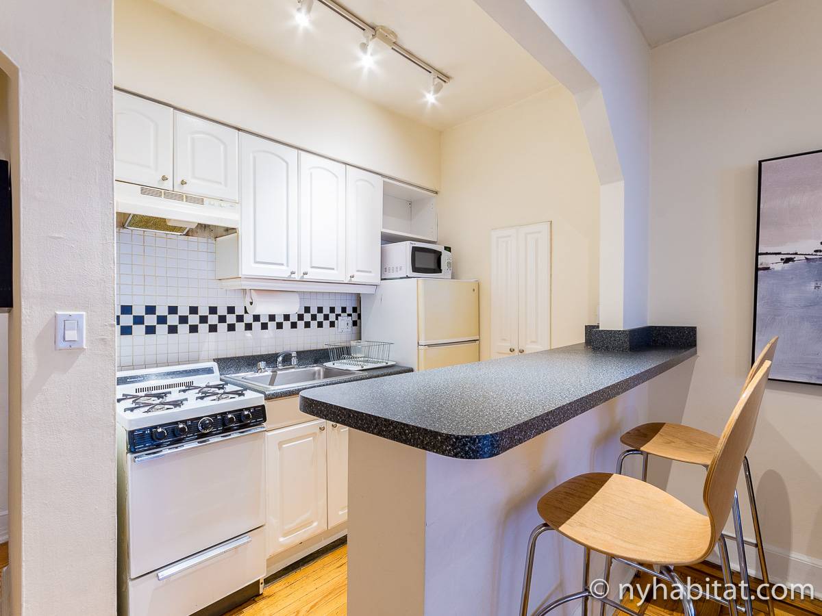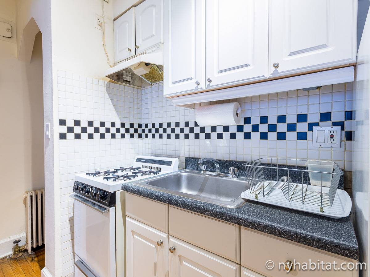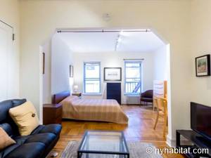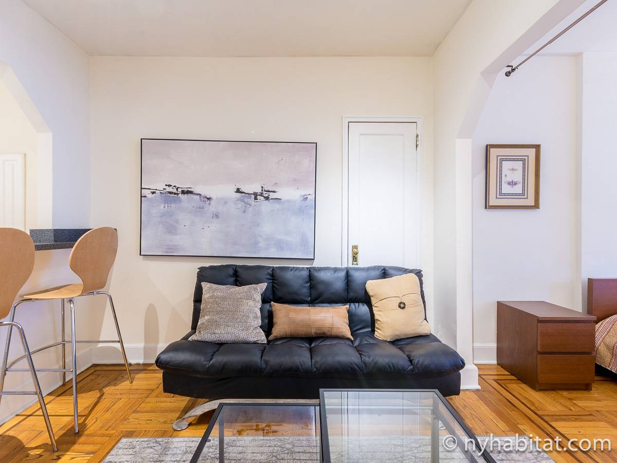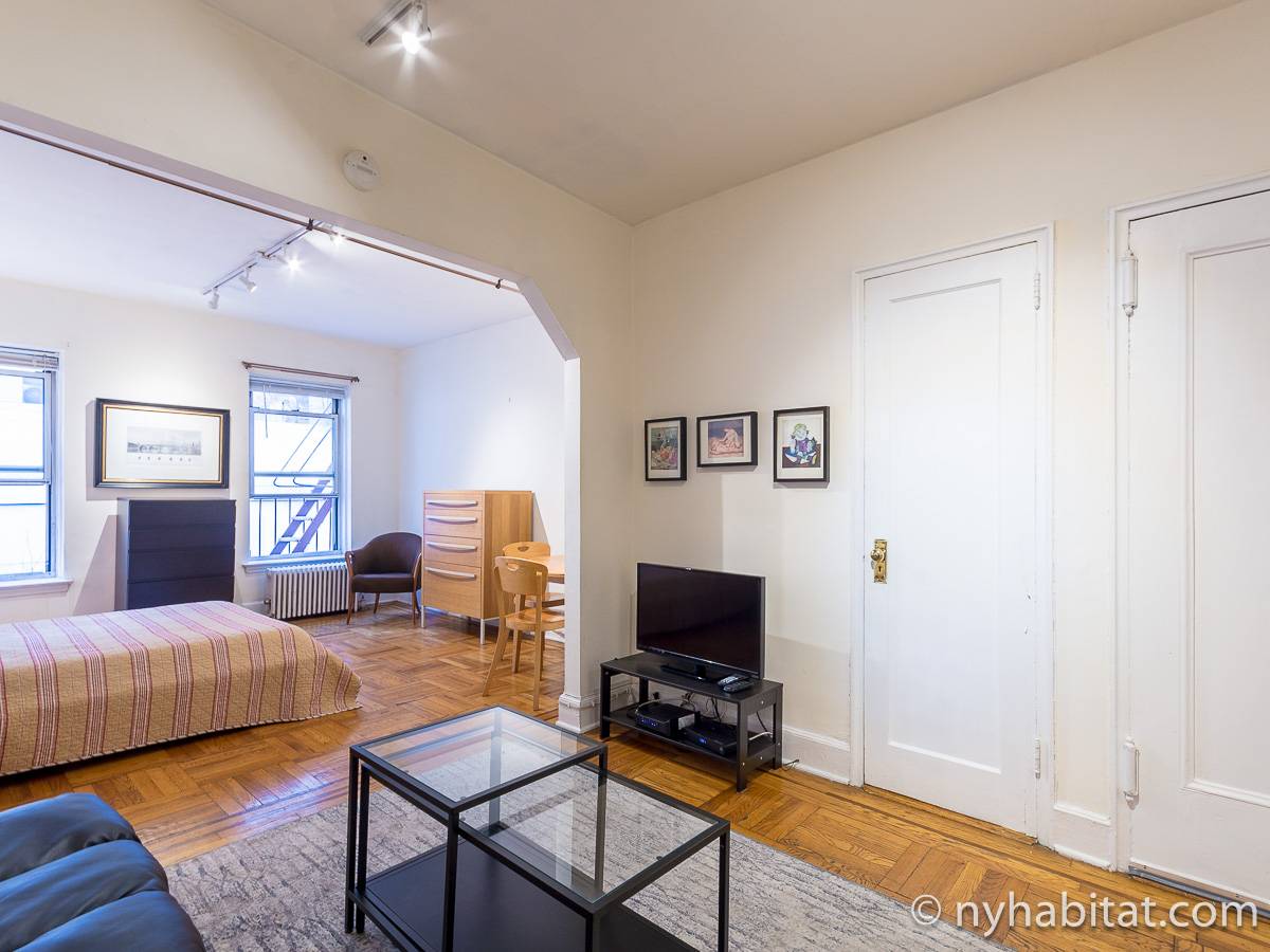 Finden Sie Ihr Urlaubszuhause an der Upper East Side von Manhattan in dieser Studiowohnung mit Alkoven. Diese Studiowohnung liegt an der East 61st Street und First Avenue und die Wohnung befindet sich im 4. Stock (entspricht in Europa dem 3. Stock) eines fünfstöckigen Gebäudes. Im Gebäude finden Sie originale Elemente, dazu gehören gewölbte Torbögen und Holzböden im Korbflechtmuster.