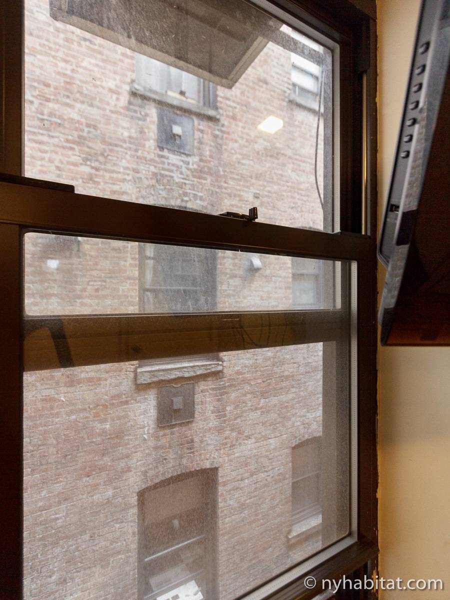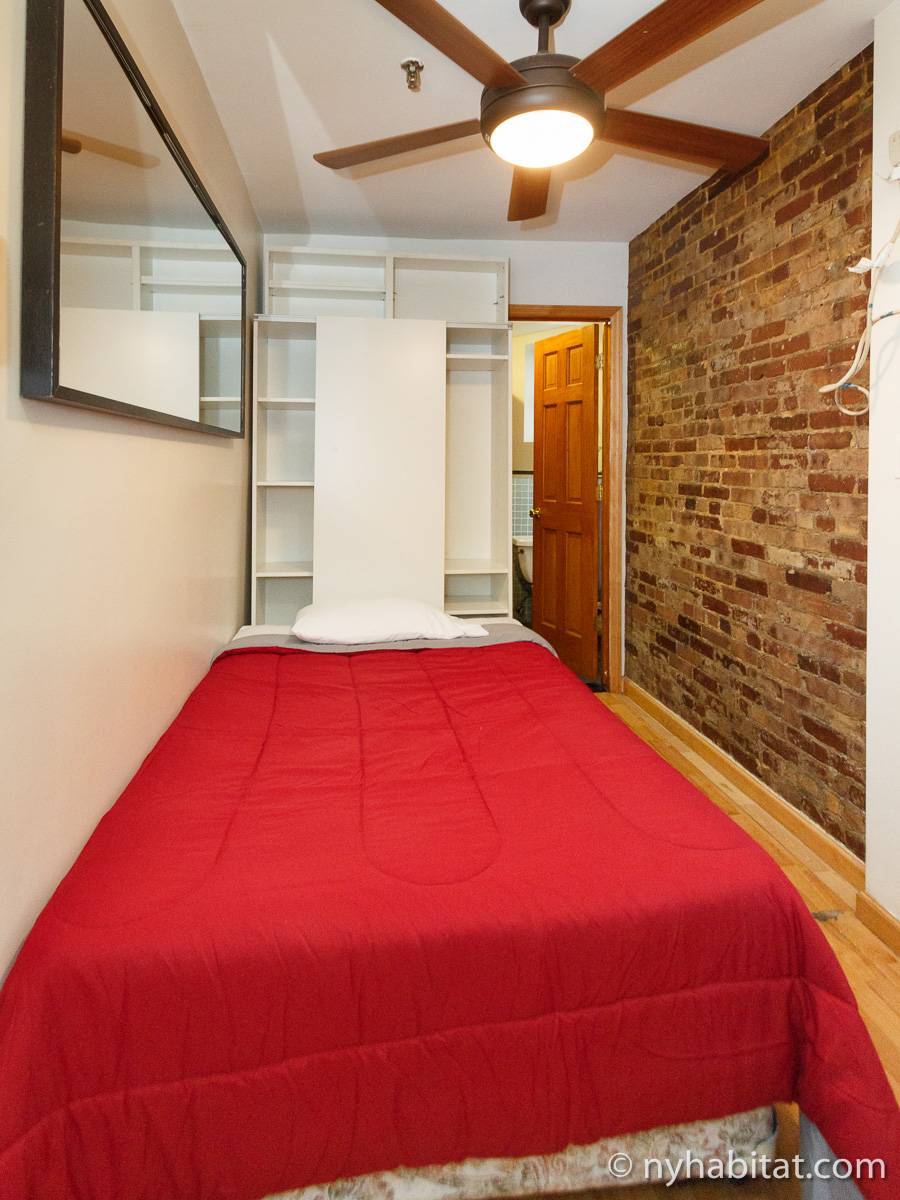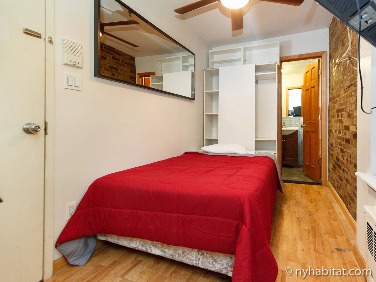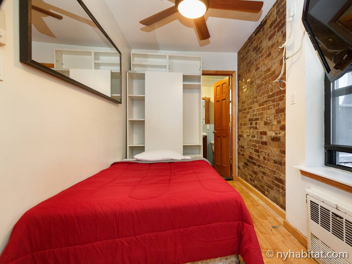 Die Wohnung ist eigentlich ein sehr kleines Schlafzimmer. Anders als auf dem Bild dargestellt, ist nur eine Seite des Betts zugänglich und es gibt weder einen Nachttisch noch einen Stuhl. Der Fernseher war ein altes Röhrenmodell mit sehr schlechtem Empfang. Der einzig benutzbare Teil der Küchenzeile war der Kühlschrank; es gibt kein Fenster im Schlafzimmer, daher wird man den Geruch nicht los, wenn man etwas in der Mikrowelle zubereitet. |