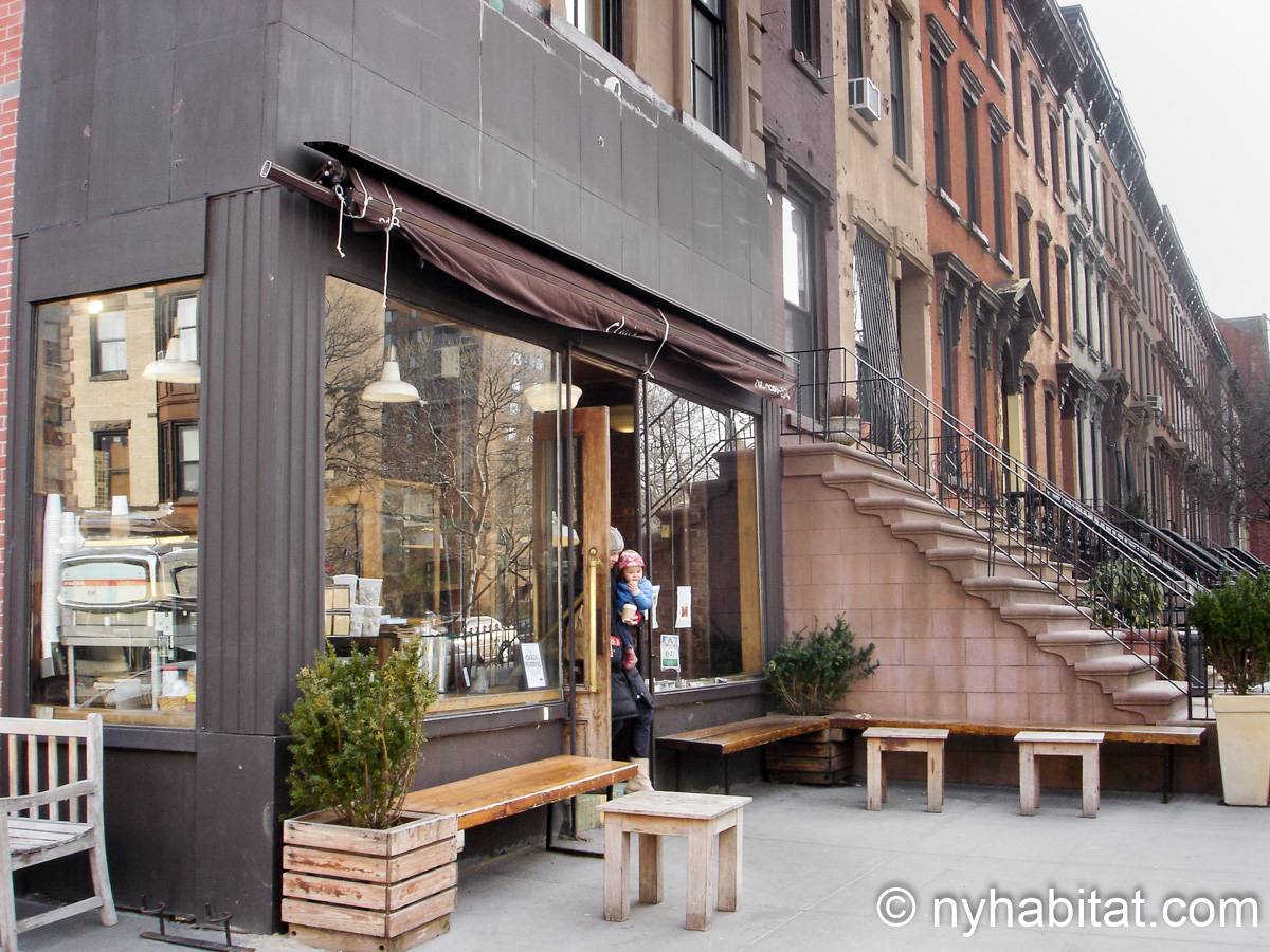 Auf der gegenüberliegenden Straßenseite befindet sich ein großer Supermarkt und an der nächstgelegenen Straßenecke ist ein kleines Café, bei dem man auf dem Weg zur U-Bahn einen Zwischenstopp einlegen kann. Auch auf dem Nachhauseweg können Sie hier vorbeigehen, denn es werden neben Kaffee auch Brot, Gebäck und Sandwiches angeboten. Clinton Hill bietet einige Geschäfte und Restaurants vor Ort und Sie haben die Möglichkeit, einige ‚Brooklyner Originale’ zu probieren! Unweit von Lafayette Avenue und Grand Avenue ist Urban Vintage, eine Kombination aus Café, Bar und Antiquitätengeschäft! Das Pratt Institute of Design befindet sich nur eine Straße nördlich und auch das St. Joseph’s College befindet sich in dieser Gegend und bringt ein jugendliches Flair in die Nachbarschaft. Im Sommer sollten Sie den Flohmarkt in Brooklyn auf keinen Fall verpassen. Er befindet sich nur 5 Blocks westlich (ca. 500 m) und lokale Händler verkaufen dort selbstgemachten Schmuck, Vintage-Artikel und vieles mehr!