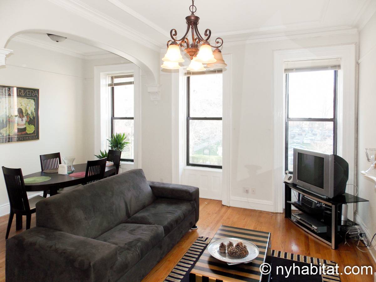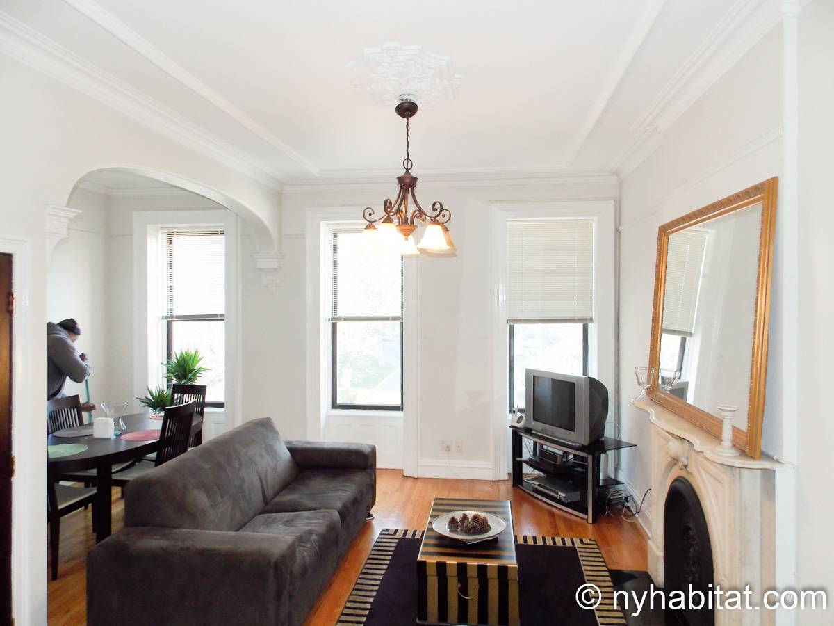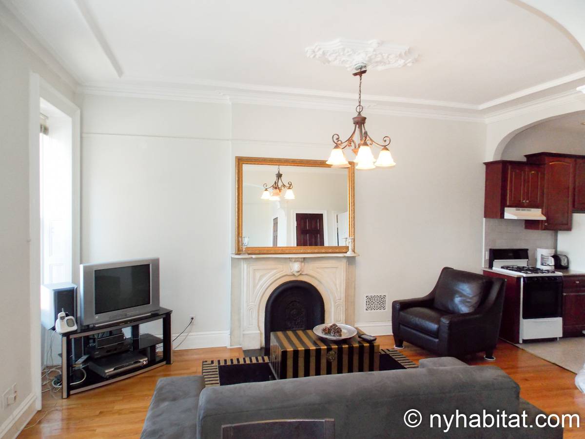 Mit bemerkenswerten Deckenzierleisten und einem dekorativen Marmor Kamin ist diese 2-Zimmer-Wohnung ein Clinton Hill ein Klassiker. In diesem Teil Brooklyns stehen viele historische Brownstone Häuser, jedoch wurde dieses sorgfältig renoviert. Dabei wurde besonders darauf geachtet, den Charme der vergangenen Jahre zu erhalten und diesen durch eine moderne Einrichtung zu ergänzen. Die Mietwohnung befindet sich im 3. Stock eines vierstöckigen Hauses (entspricht in Europa dem 2. Stockwerk) ohne Aufzug. Für Gäste ist eine Gegensprechanlage installiert.