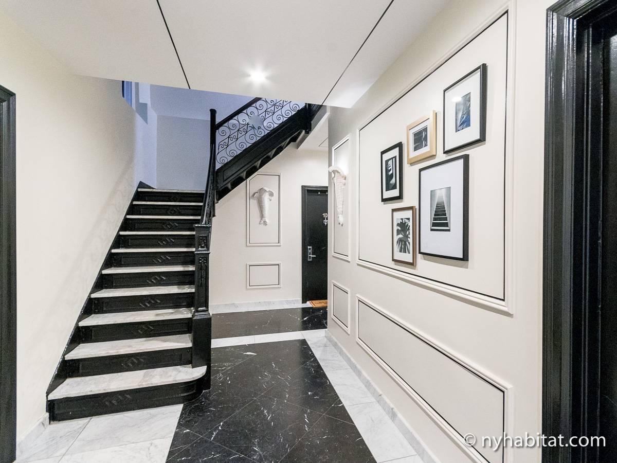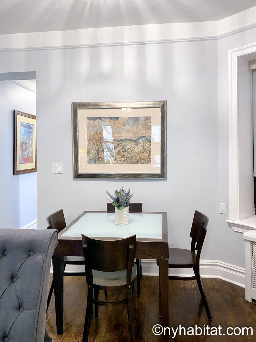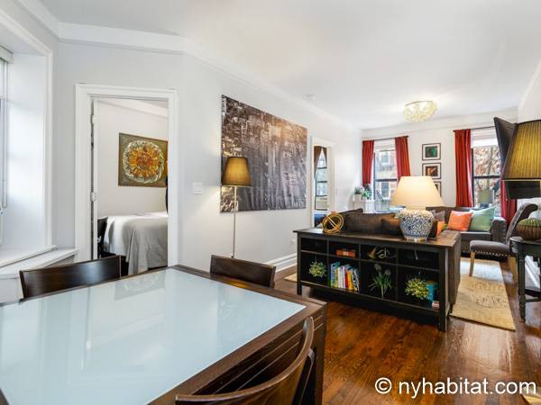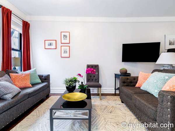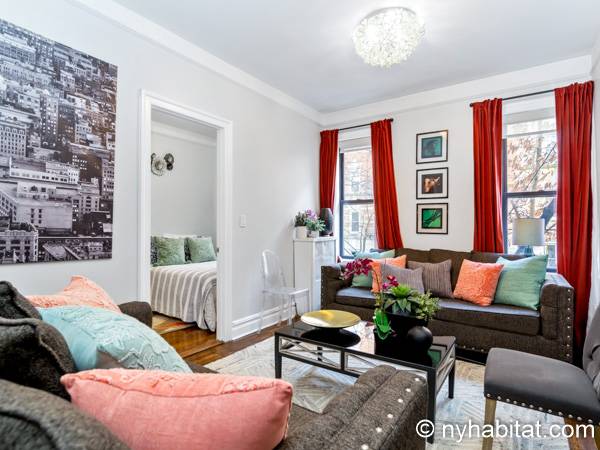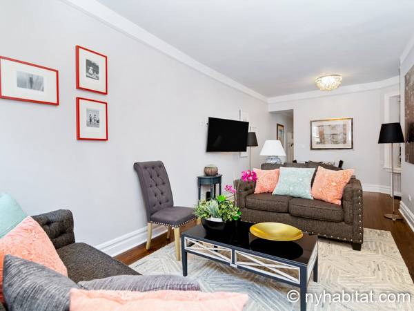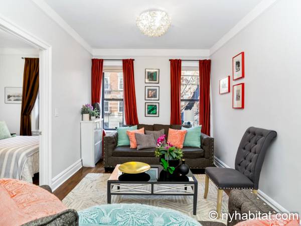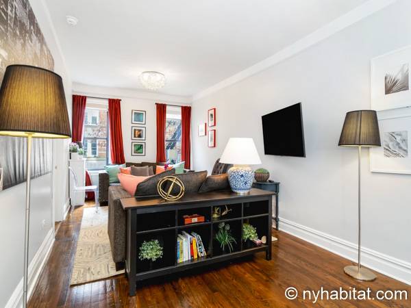 Diese sorgfältig dekorierte Drei-Zimmer-Wohnung liegt in der Upper West Side in Manhattan nahe des Central Park, Columbia University und der geschäftigen Columbus Avenue. Die Wohnung liegt im 2. Stock (entspricht in Europa dem 1. Stock) eines 4-stöckigen Gebäudes ohne Fahrstuhl und mit einer Gegensprechanlage für die Gäste.