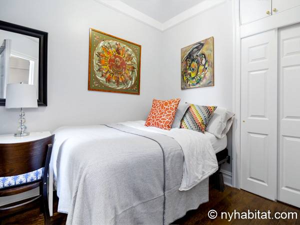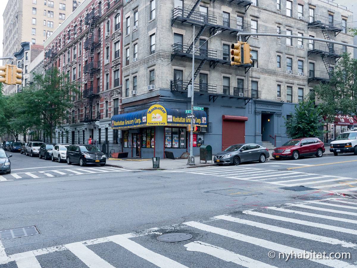 Diese voll möblierte Wohnung liegt an der 107th Street und Manhattans Upper West Side. Der Central Park mit seinen endlosen Pfaden und Wegen liegt weniger als zwei Blocks Richtung Osten (ca. 250 m) und der Morningside Park ist auch in der Nähe, nur 3 Blocks entfernt (350 m). Die Gegend bietet auch eine Menge an kulturellen Möglichkeiten, wie dem Museum of Natural History, dass nur 5 Bahnhaltestellen entfernt liegt, oder der Columbia University, die nur 6 Blocks (ca. 1 km) von der Wohnung entfernt ist. Die Columbus und Amsterdam Avenues sind nur die Straße runter und bieten beide eine Menge an Shopping- und Essmöglichkeiten sowie Bars und Clubs. Nur eine Bahnstation an der 96th Street entfernt gibt es einen Bio-Markt.