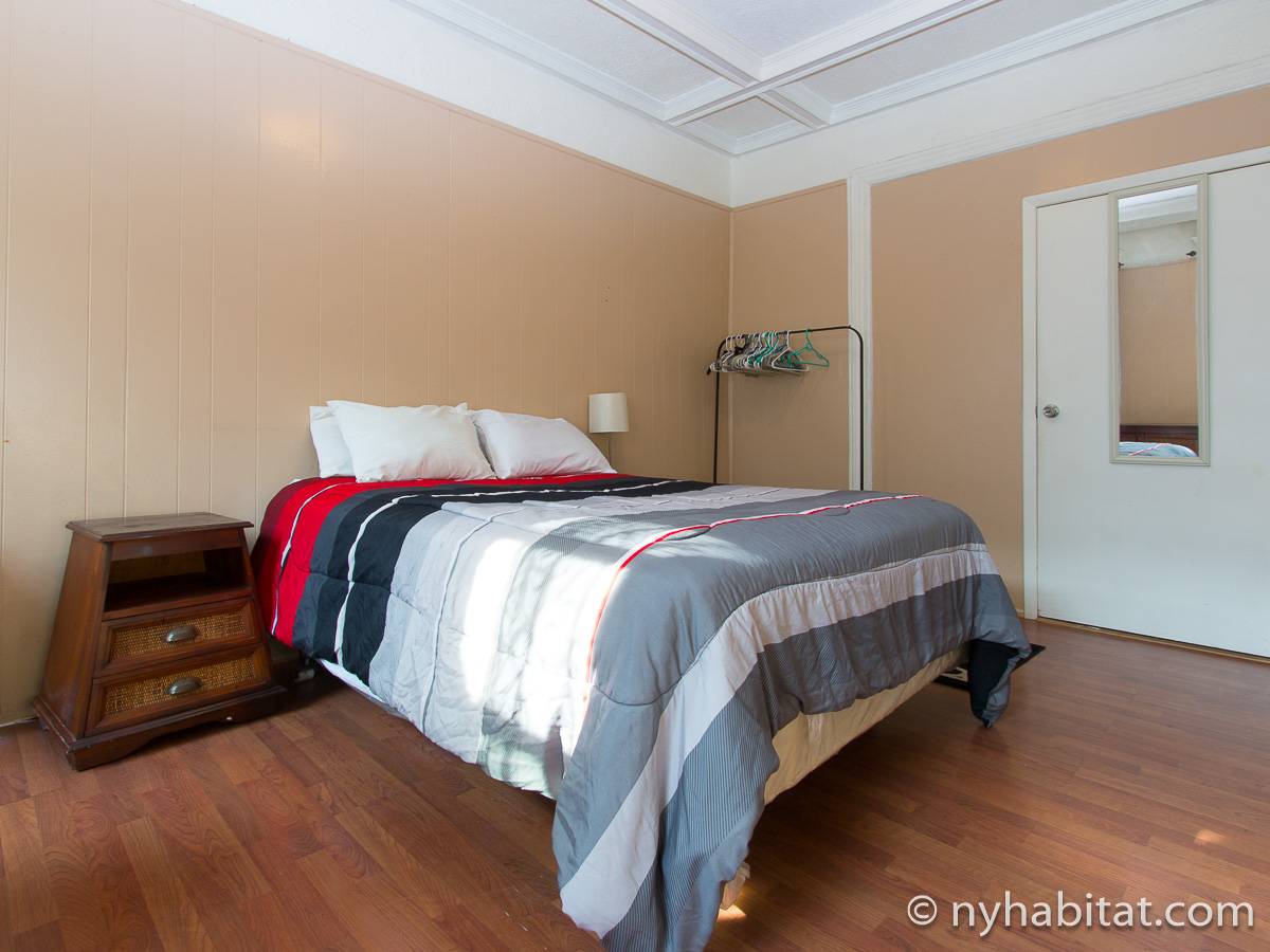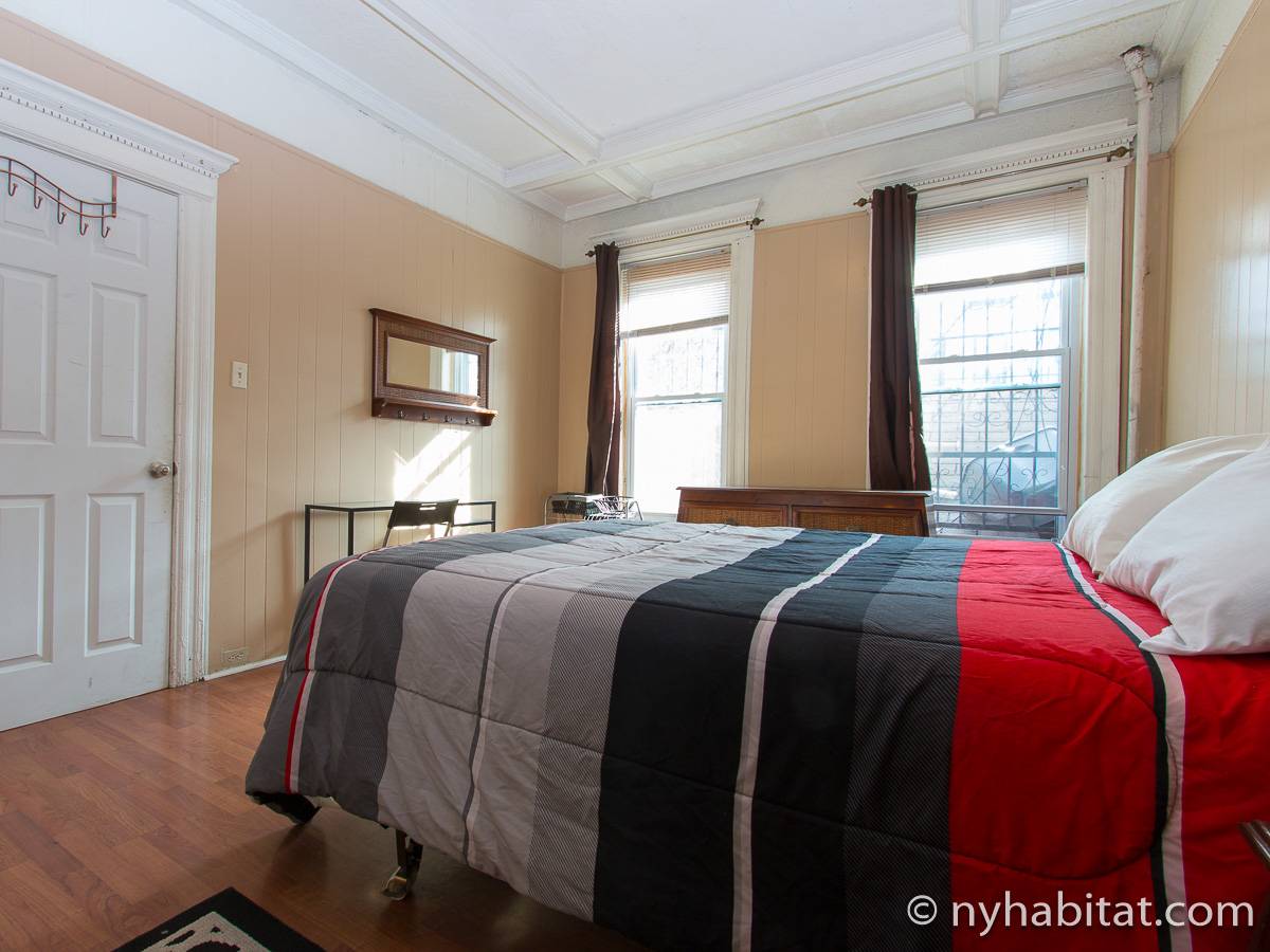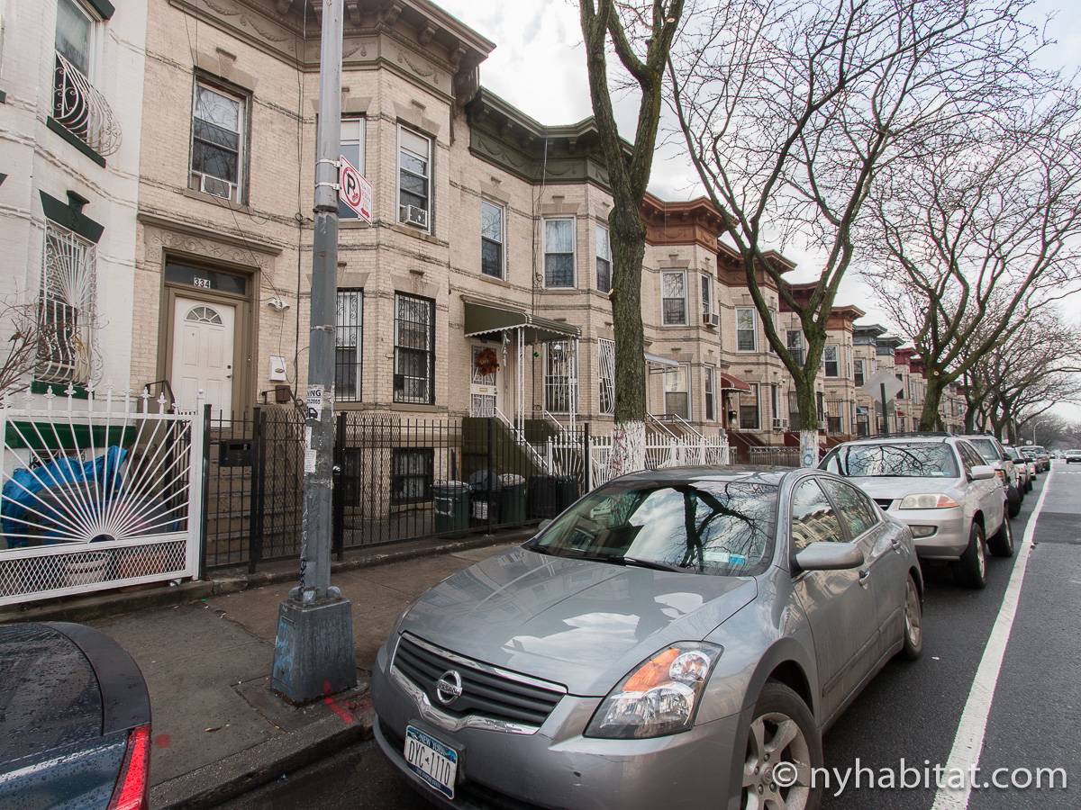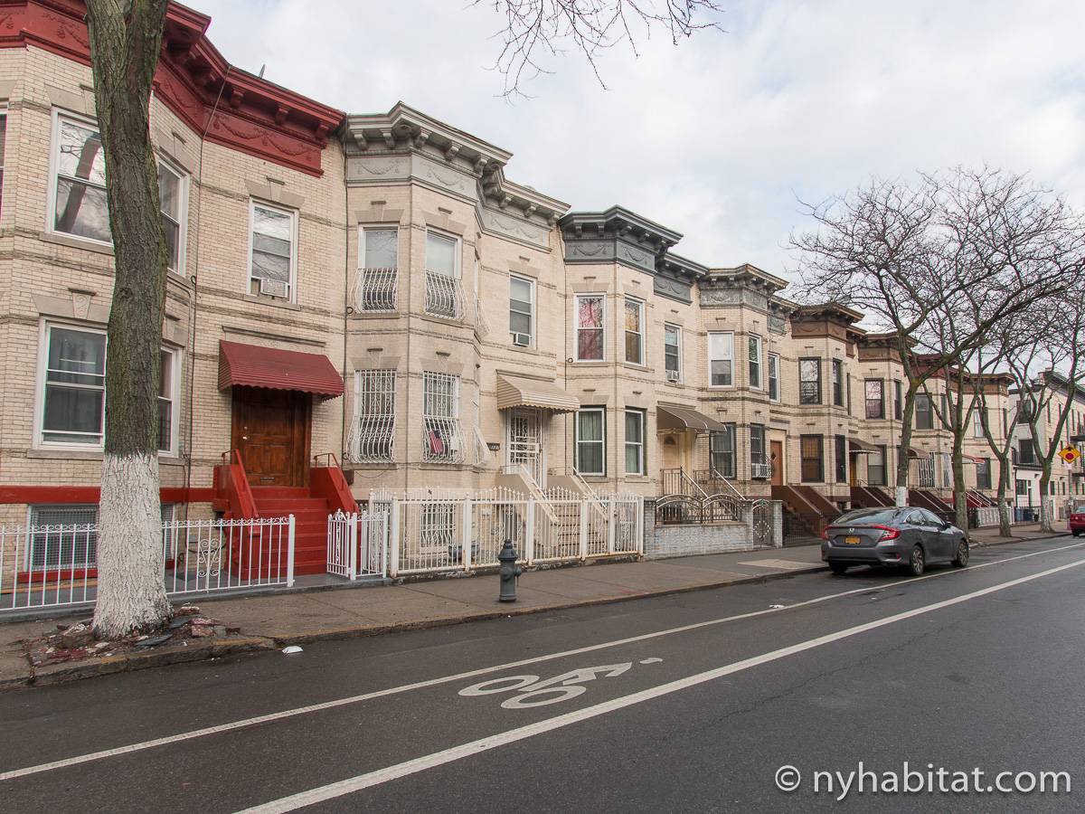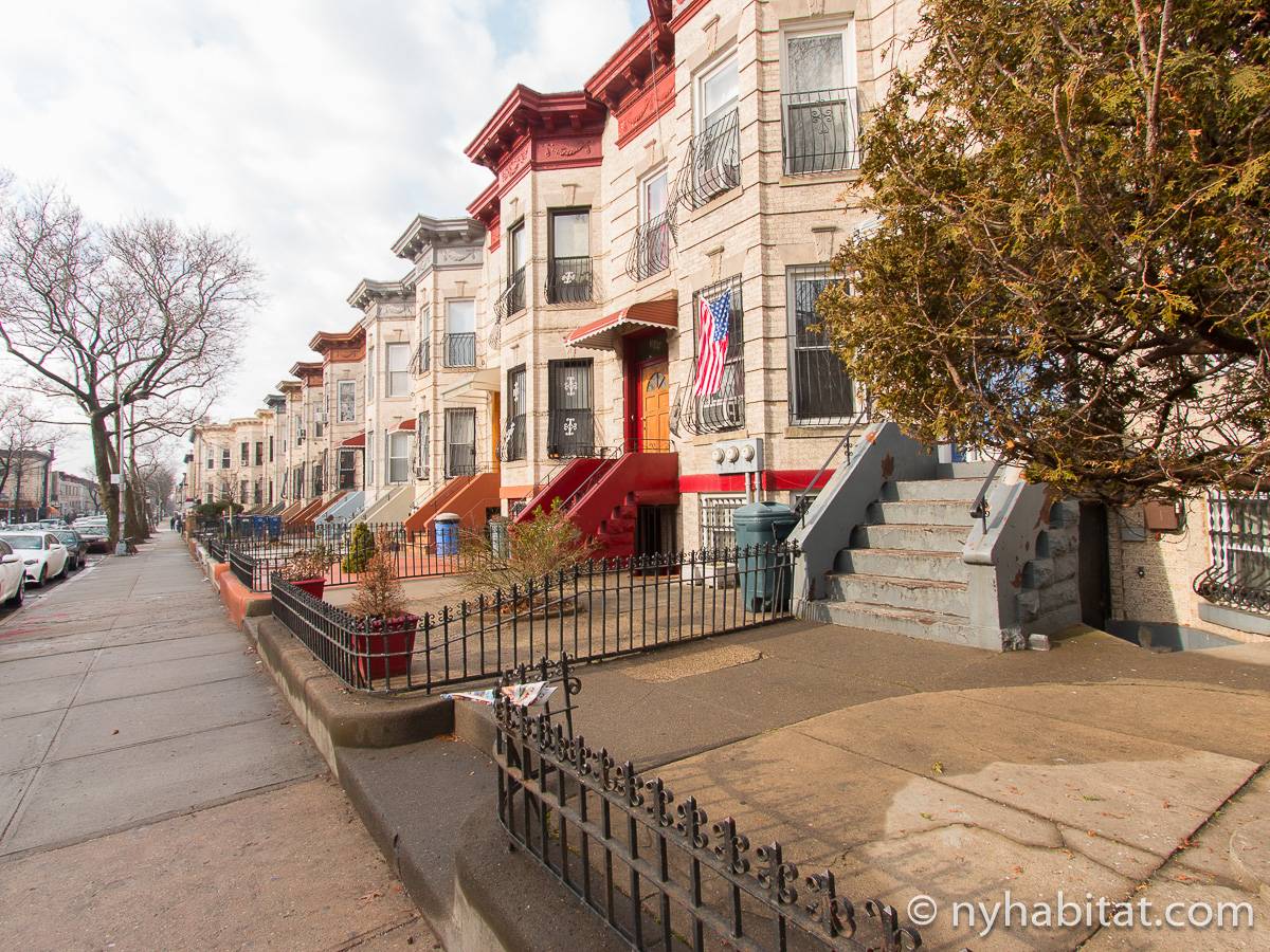 Eine für Brooklyn typische Steintreppe führt zu dieser 4-Zimmer-Wohnung hinauf, die sich im Erdgeschoss eines dreistöckigen Stadthauses im Stadtteil Bushwick befindet. Die Wohnung besitzt Hartholzfußböden in den Schlafzimmern und in jedem seiner zwei Wohnzimmer, welche zwar nebeneinander liegen, aber auch privat genutzt werden können. Die Küche ist gefliest und hat eine Hintertür mit Holzstufen, die in einen privaten Garten hinunter führen, welcher im Sommer perfekt zum Sonnenbaden ist. Diese 4-Zimmer-Wohnung ist perfekt für sparsame Reisende.