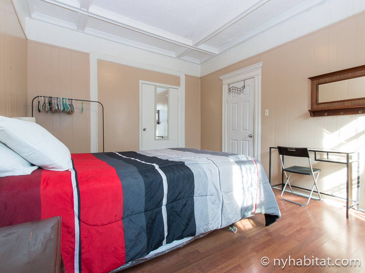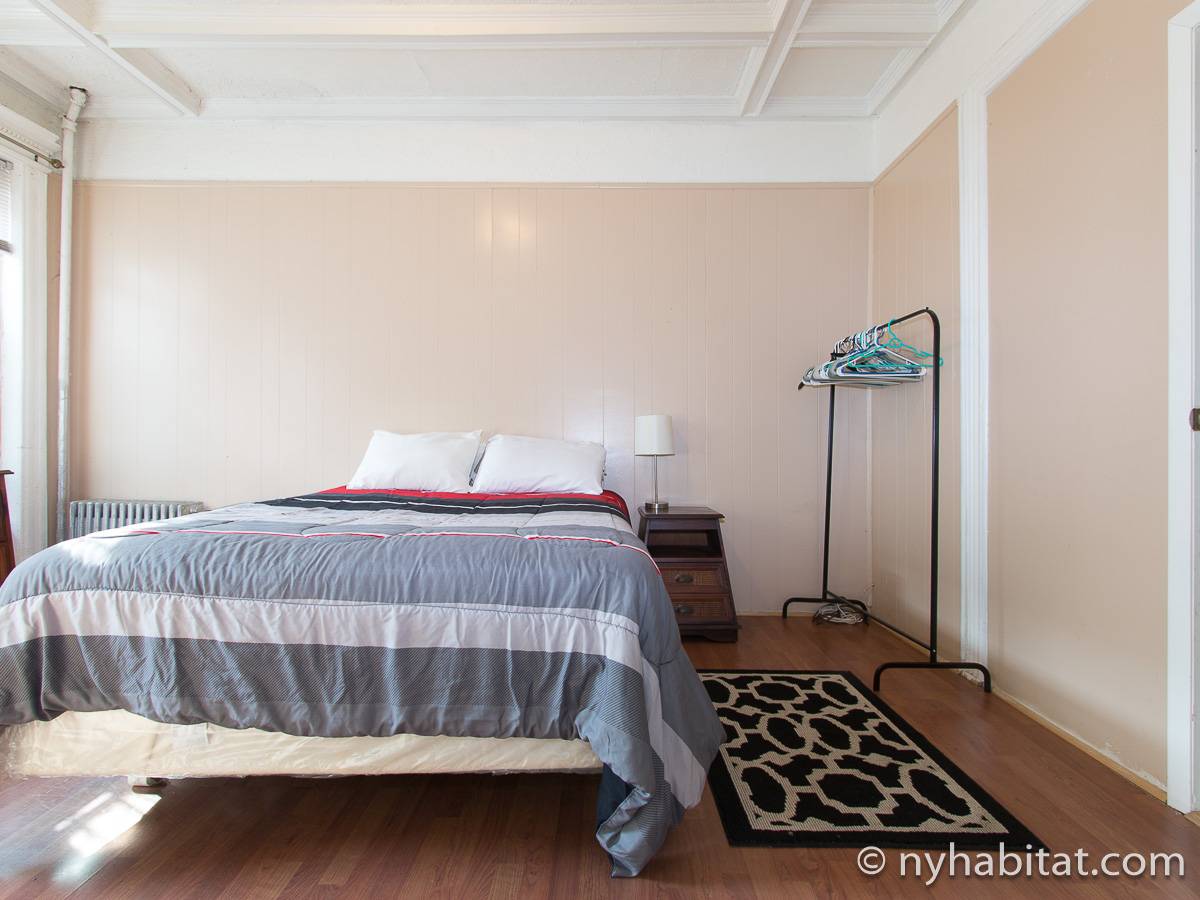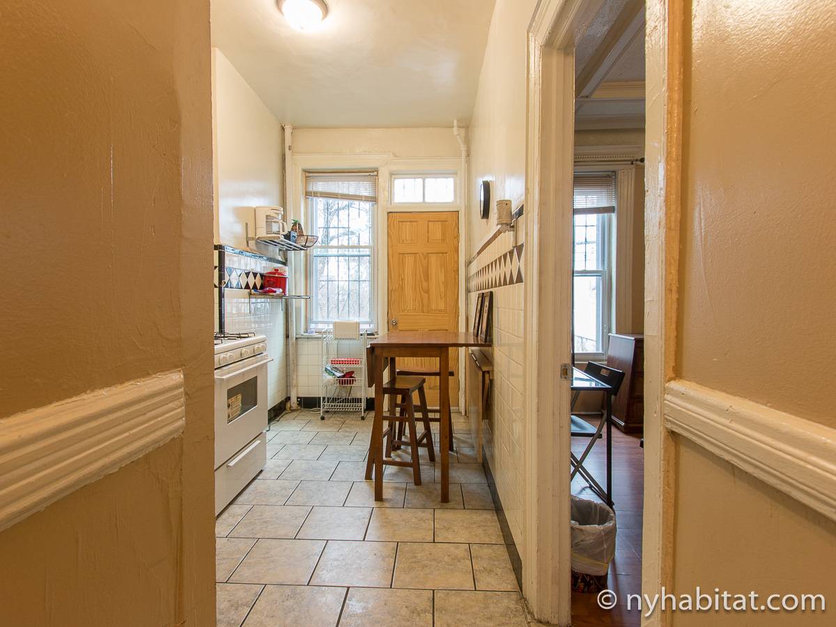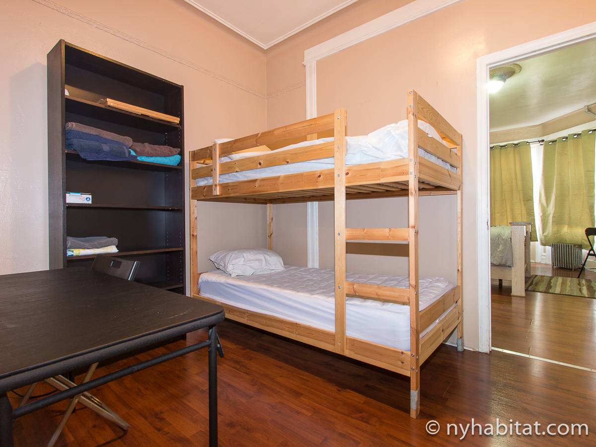 Eine für Brooklyn typische Steintreppe führt zu dieser 4-Zimmer-Wohnung hinauf, die sich im Erdgeschoss eines dreistöckigen Stadthauses im Stadtteil Bushwick befindet. Die Wohnung besitzt Hartholzfußböden in den Schlafzimmern und in jedem seiner zwei Wohnzimmer, welche zwar nebeneinander liegen, aber auch privat genutzt werden können. Die Küche ist gefliest und hat eine Hintertür mit Holzstufen, die in einen privaten Garten hinunter führen, welcher im Sommer perfekt zum Sonnenbaden ist. Diese 4-Zimmer-Wohnung ist perfekt für sparsame Reisende.