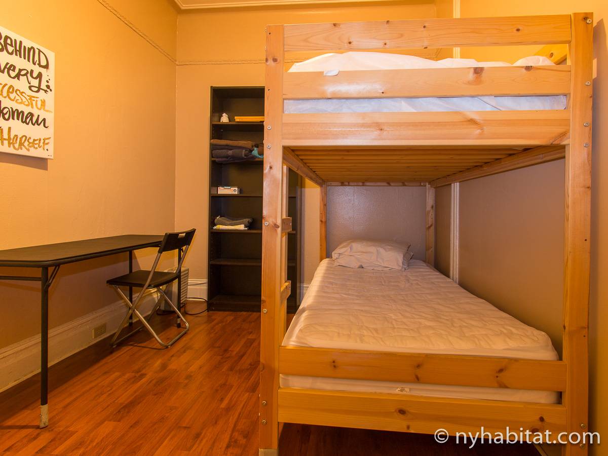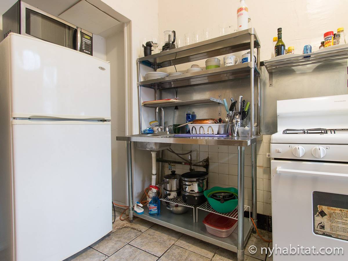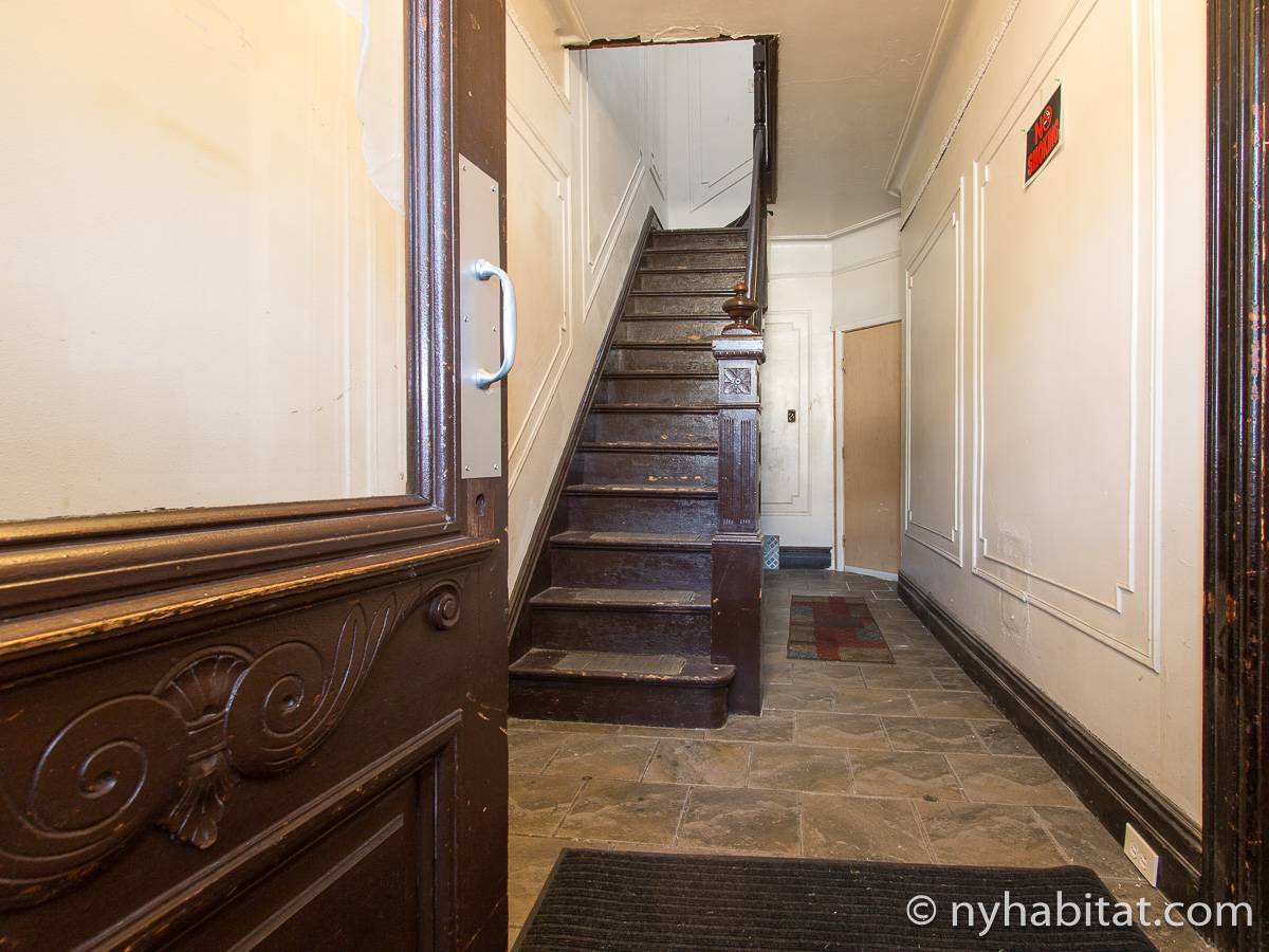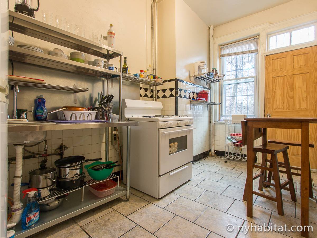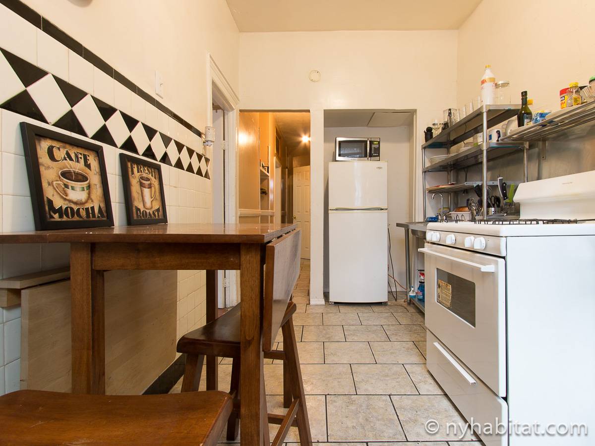 Eine für Brooklyn typische Steintreppe führt zu dieser 4-Zimmer-Wohnung hinauf, die sich im Erdgeschoss eines dreistöckigen Stadthauses im Stadtteil Bushwick befindet. Die Wohnung besitzt Hartholzfußböden in den Schlafzimmern und in jedem seiner zwei Wohnzimmer, welche zwar nebeneinander liegen, aber auch privat genutzt werden können. Die Küche ist gefliest und hat eine Hintertür mit Holzstufen, die in einen privaten Garten hinunter führen, welcher im Sommer perfekt zum Sonnenbaden ist. Diese 4-Zimmer-Wohnung ist perfekt für sparsame Reisende.