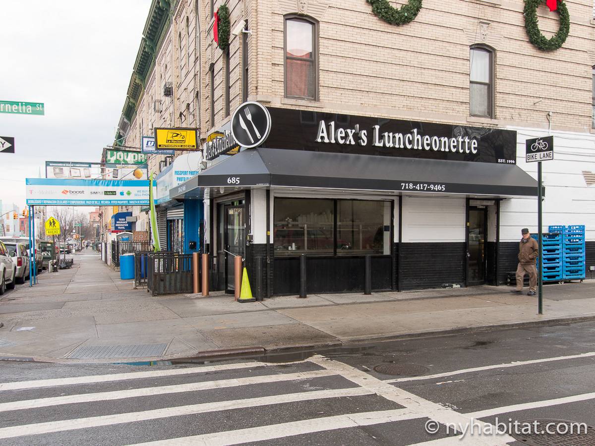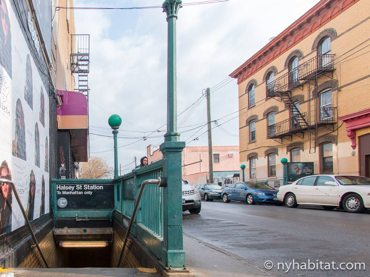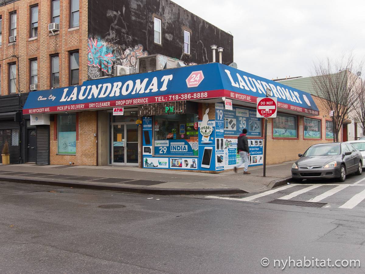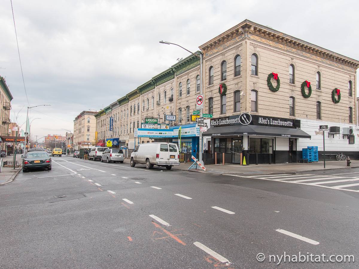 Das Stadthaus befindet sich in der Cornelia Street zwischen der Irving Avenue und der Knickerbocker Avenue. Die nächstgelegene U-Bahnstation ist nur sechs Blocks entfernt die Myrtle-Wyckoff Avenues, an der Sie die Linien M oder L nehmen können, die Ihnen beide dabei helfen werden, nach Manhattan zu gelangen, wobei Sie außerdem durch den trendigen Stadtteil Williamsburg kommen. Einer der größten Parks in Bushwick befindet sich nur 4 Blocks entfernt von der Wohnung: Der Irving Square Park besitzt einige schöne Birnbäume, einen Spielplatz, eine zentral angelegte Rasenfläche und historische Tore. Es gibt viele Restaurants, Geschäfte und Lebensmittelläden in diesem Teil von New York City, hauptsächlich in der Knickerbocker Avenue und der Myrtle Avenue. Nine & One Grocery liegt nur einen Block weit von der Wohnung weg, ebenso wie die Restaurants Happy Steak und Good Chinese. Der berühmte Schauspieler Eddie Murphy wuchs in Bushwick auf.
