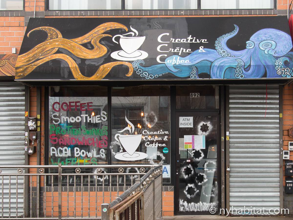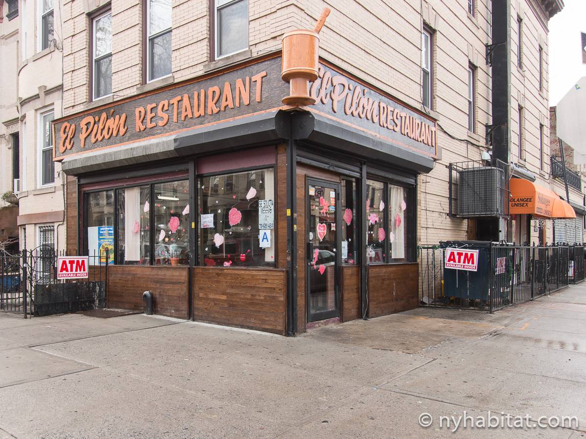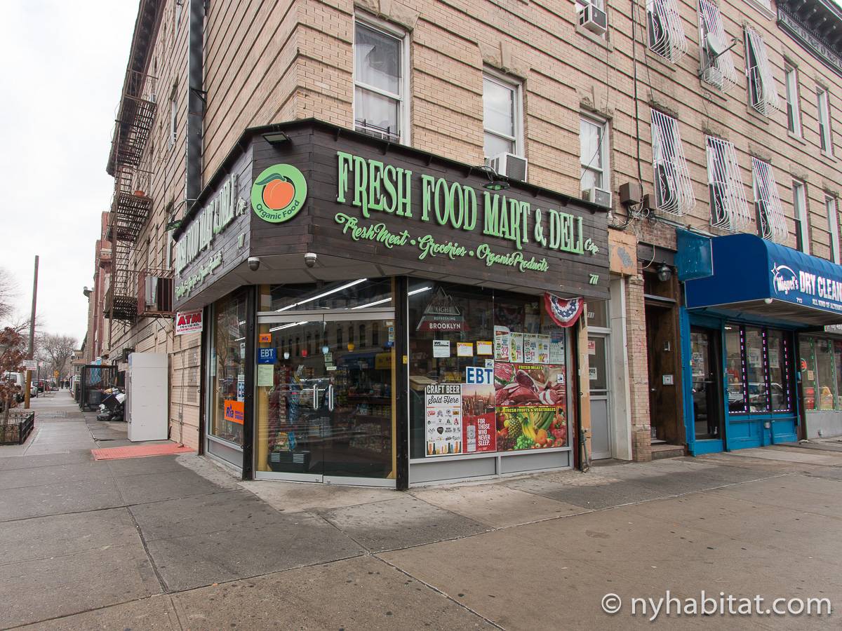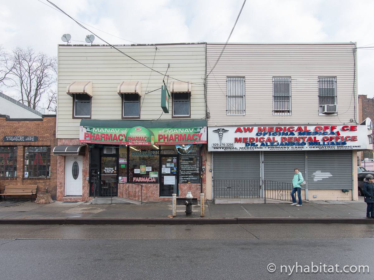 Das Stadthaus befindet sich in der Cornelia Street zwischen der Irving Avenue und der Knickerbocker Avenue. Die nächstgelegene U-Bahnstation ist nur sechs Blocks entfernt die Myrtle-Wyckoff Avenues, an der Sie die Linien M oder L nehmen können, die Ihnen beide dabei helfen werden, nach Manhattan zu gelangen, wobei Sie außerdem durch den trendigen Stadtteil Williamsburg kommen. Einer der größten Parks in Bushwick befindet sich nur 4 Blocks entfernt von der Wohnung: Der Irving Square Park besitzt einige schöne Birnbäume, einen Spielplatz, eine zentral angelegte Rasenfläche und historische Tore. Es gibt viele Restaurants, Geschäfte und Lebensmittelläden in diesem Teil von New York City, hauptsächlich in der Knickerbocker Avenue und der Myrtle Avenue. Nine & One Grocery liegt nur einen Block weit von der Wohnung weg, ebenso wie die Restaurants Happy Steak und Good Chinese. Der berühmte Schauspieler Eddie Murphy wuchs in Bushwick auf.
