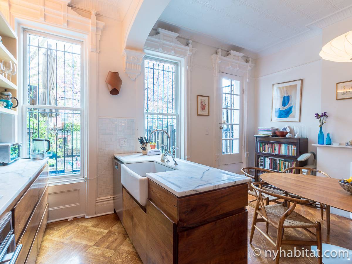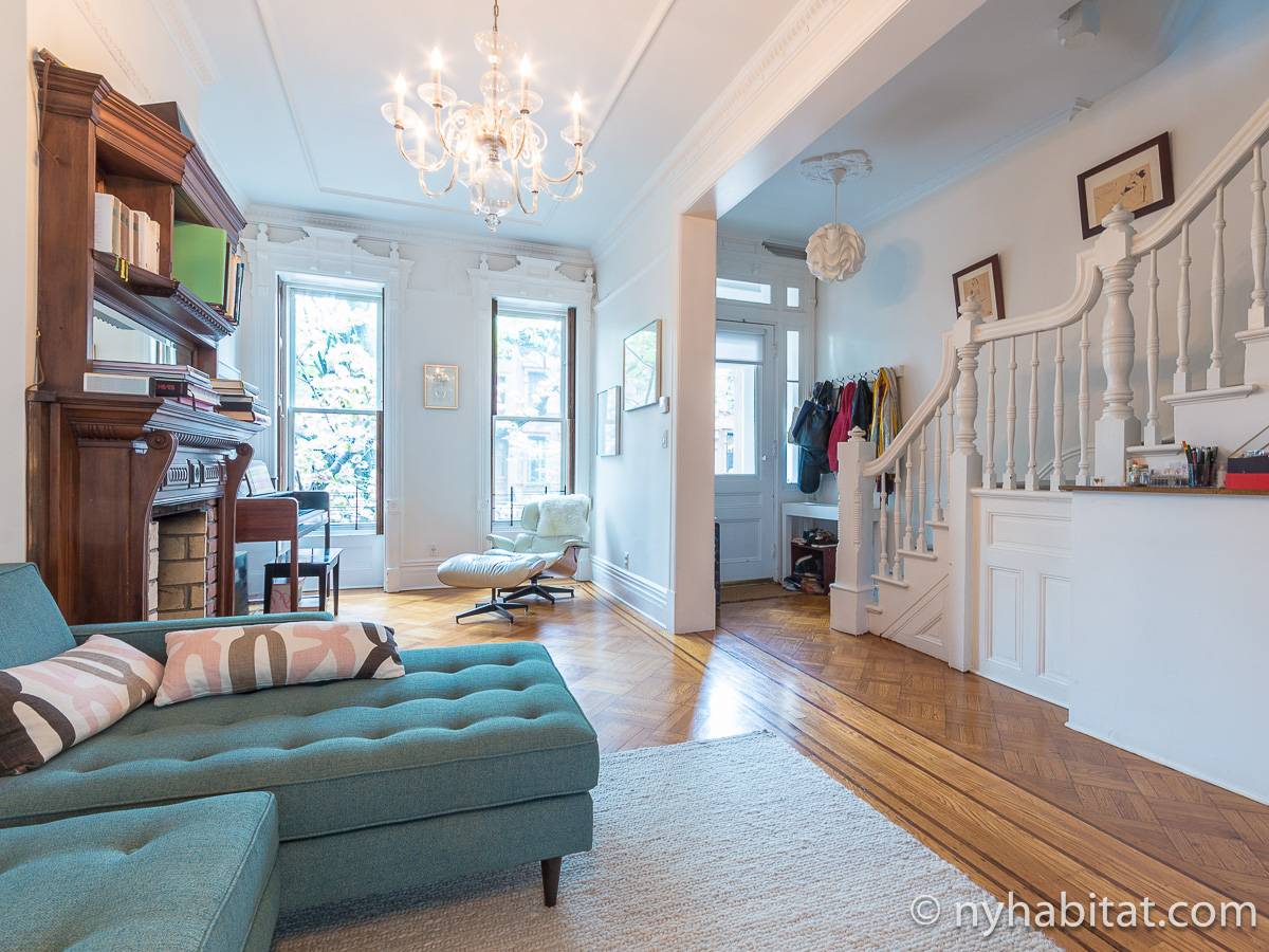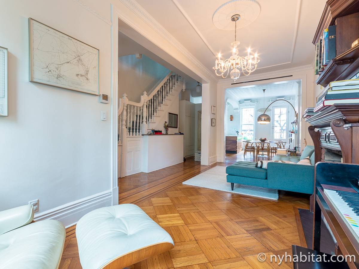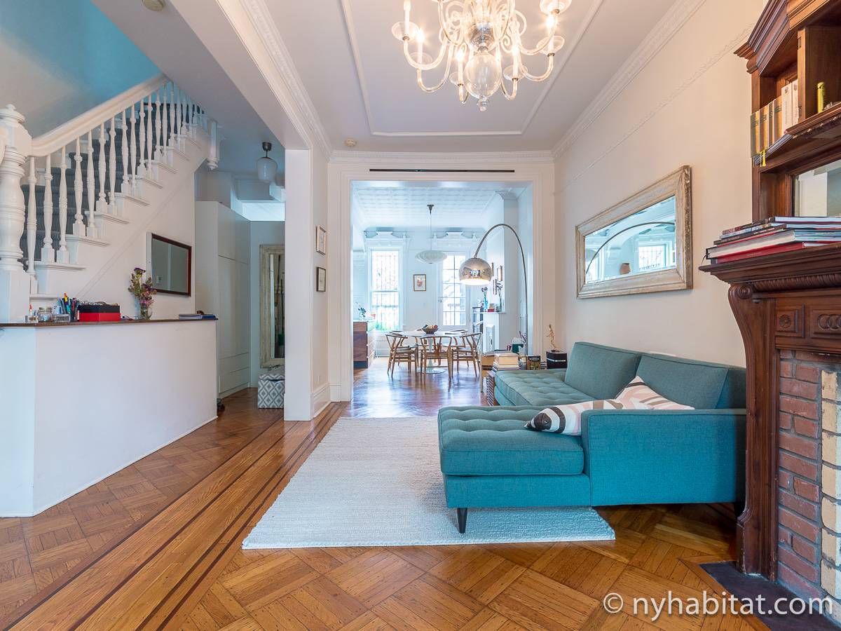 Die gesamte 5-Zimmer-Wohnung wurde sorgfältig mit klassischen Möbeln mit moderner Note dekoriert, um die eleganten, hohen Decken hervorzuheben und das Tageslicht in nahezu jeden Raum hineinzulassen. Die 3 Stockwerke gewähren Ihnen durchgehend Privatsphäre: Sie können ein Buch im gemütlichen Wohnzimmer oder im Gesellschaftsraum lesen, oder sich auf die oberste Etage begeben, um im Büro Ihre Arbeit zu erledigen oder Sie schauen Fernsehen oder eine DVD im Gemeinschaftsraum (Schlafzimmer #4). Auf den zwei oberen Etagen gibt es zwei große, luftige Badezimmer sowie eine Waschmaschine und einen Trockner, um Ihre wertvolle Zeit in New York zu maximieren.
