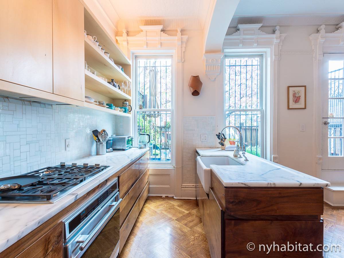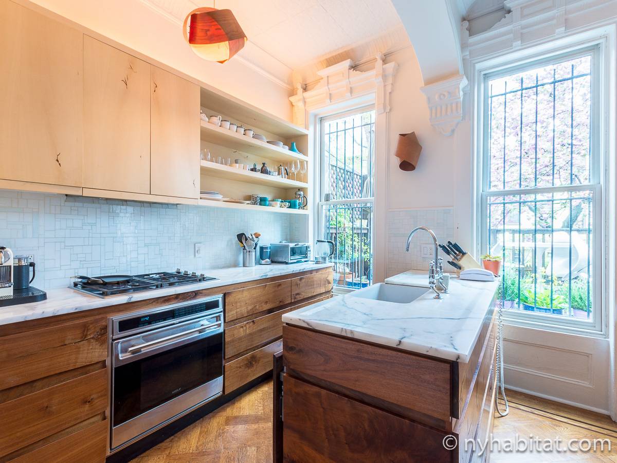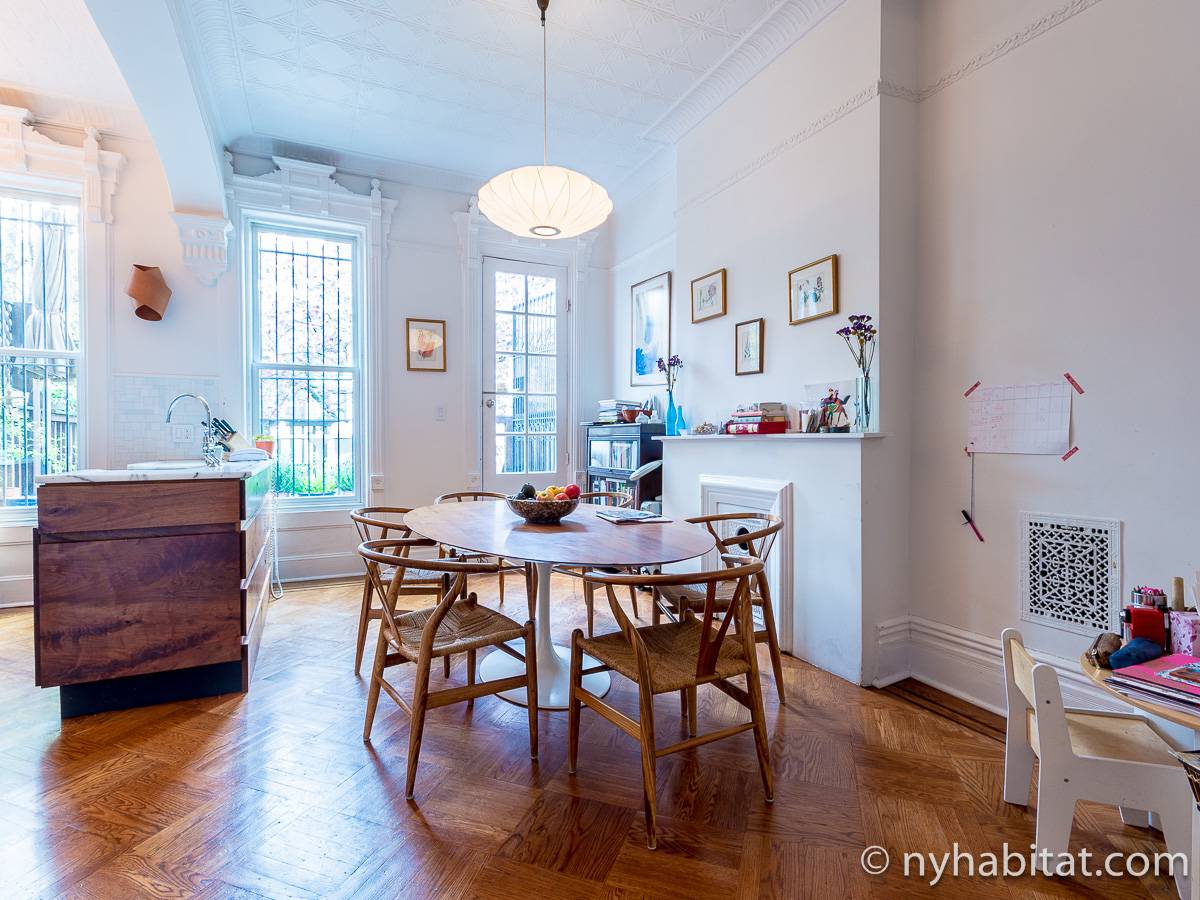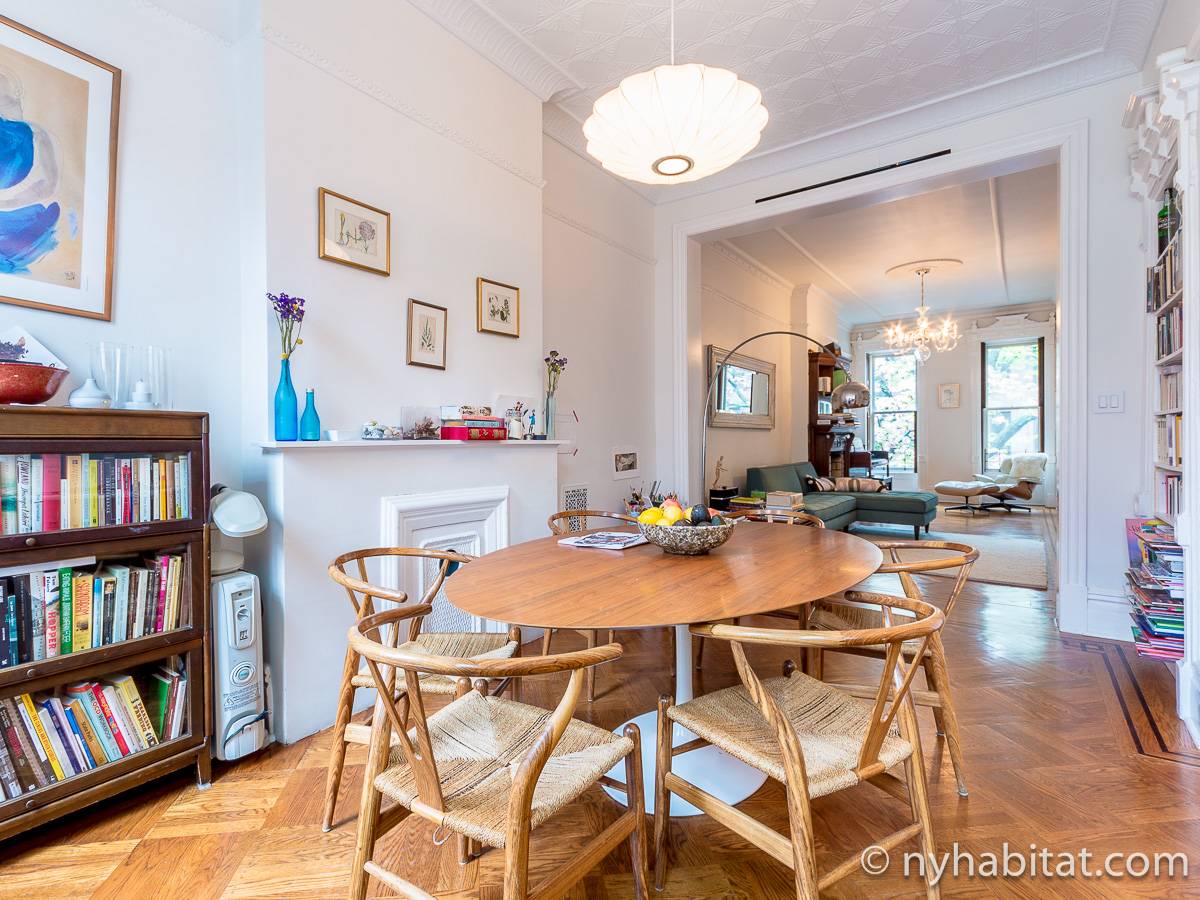 Die gesamte 5-Zimmer-Wohnung wurde sorgfältig mit klassischen Möbeln mit moderner Note dekoriert, um die eleganten, hohen Decken hervorzuheben und das Tageslicht in nahezu jeden Raum hineinzulassen. Die 3 Stockwerke gewähren Ihnen durchgehend Privatsphäre: Sie können ein Buch im gemütlichen Wohnzimmer oder im Gesellschaftsraum lesen, oder sich auf die oberste Etage begeben, um im Büro Ihre Arbeit zu erledigen oder Sie schauen Fernsehen oder eine DVD im Gemeinschaftsraum (Schlafzimmer #4). Auf den zwei oberen Etagen gibt es zwei große, luftige Badezimmer sowie eine Waschmaschine und einen Trockner, um Ihre wertvolle Zeit in New York zu maximieren.