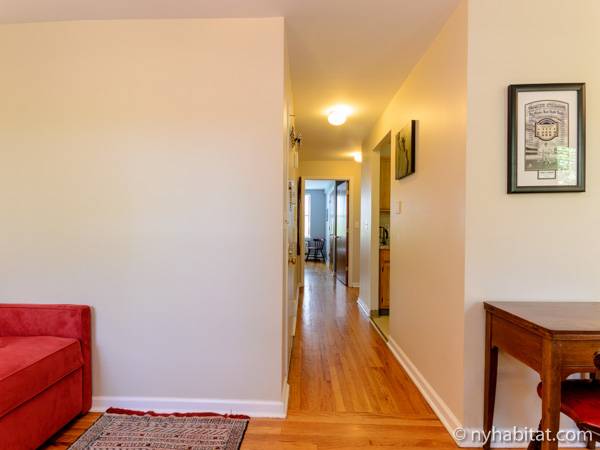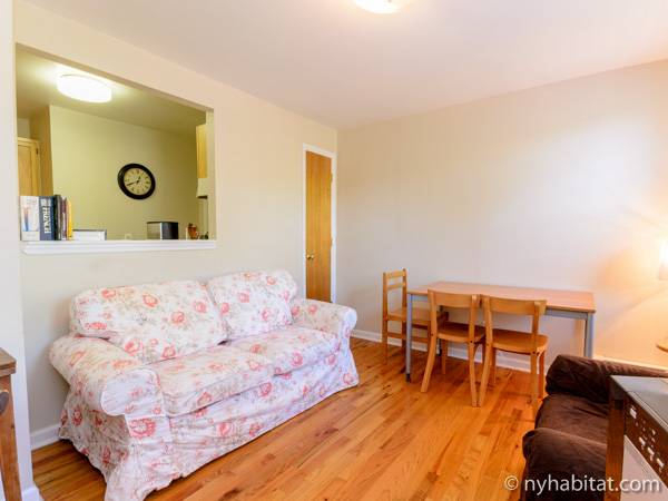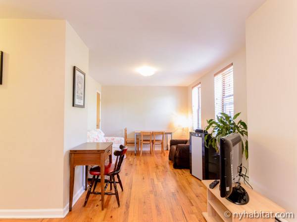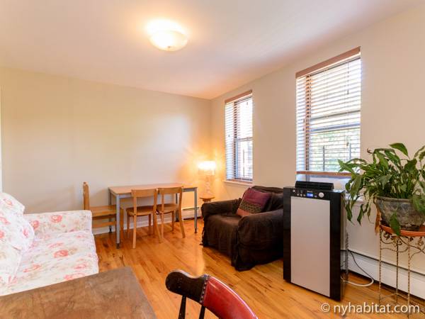 Diese 3-Zimmer-Wohnung befindet sich in der West 130th Street und 7th Avenue. Sie liegt im obersten Stockwerk eines vierstöckigen Gebäudes ohne Fahrstuhl (entspricht einem dreistöckigen Gebäude in Europa) aus dem 21. Jahrhundert. Für Familien, die hier die Ferien verbringen möchten, ist diese Mietwohnung sehr gut geeignet, da sie eine helle Einrichtung und Parkettfußböden hat.