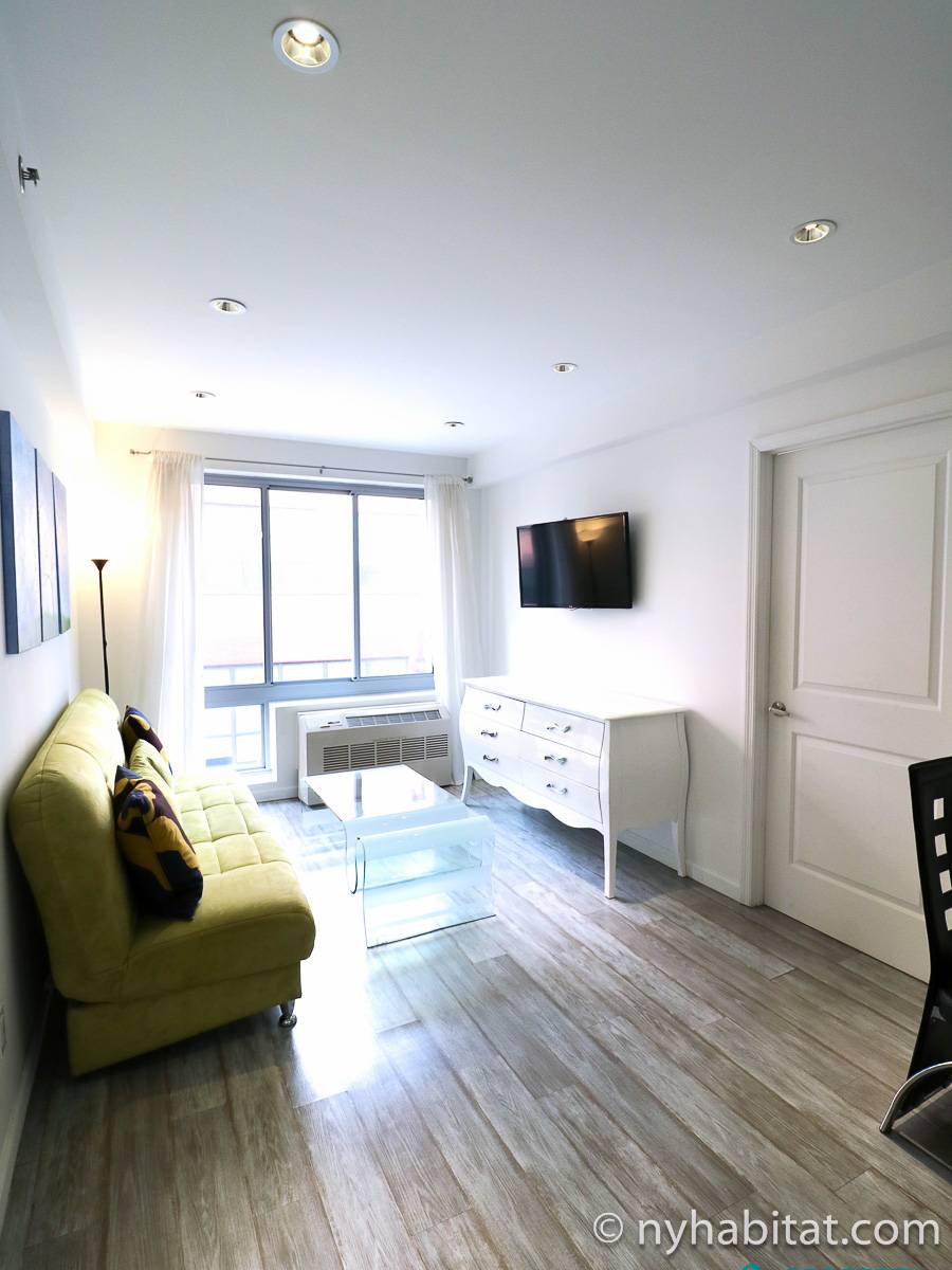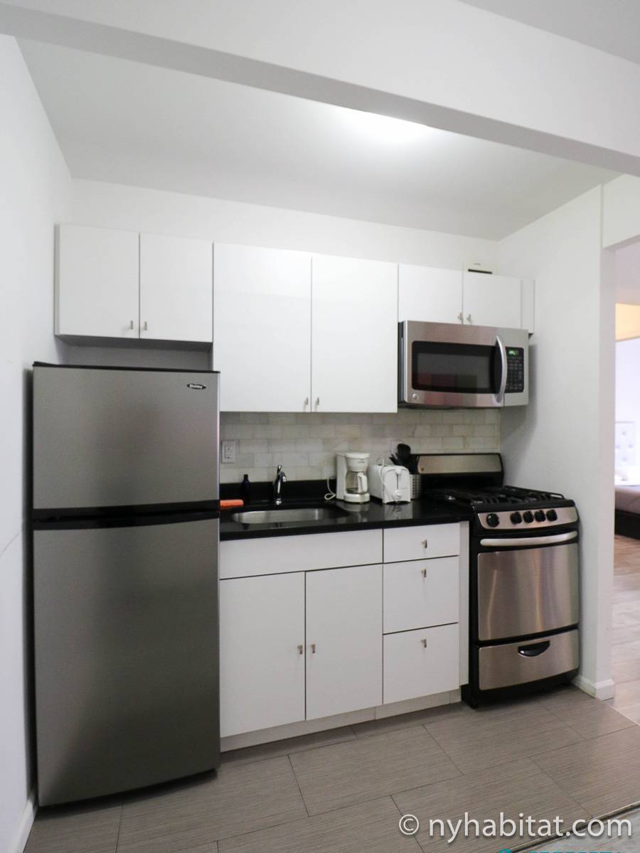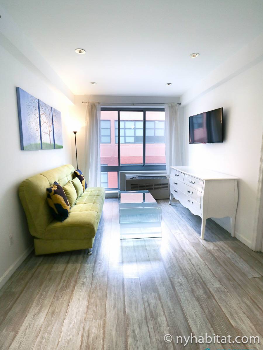 Diese möblierten 3-Zimmer-Wohnungen befinden sich in einem fünfstöckigen Gebäude (entspricht einem vierstöckigen Gebäude in Europa) ohne Fahrstuhl auf der West 48th Street & 10th Avenue. Für Ihren Komfort steht Ihnen im Haus neben einem gemeinschaftlichen Waschraum auch ein Sicherheitssystem zur Verfügung. Außerdem gibt es einen Teilzeit-Pförtner, der montags bis freitags von 18.00 Uhr bis 2.00 Uhr und samstags von 10.00 Uhr bis 18.00 Uhr arbeitet.