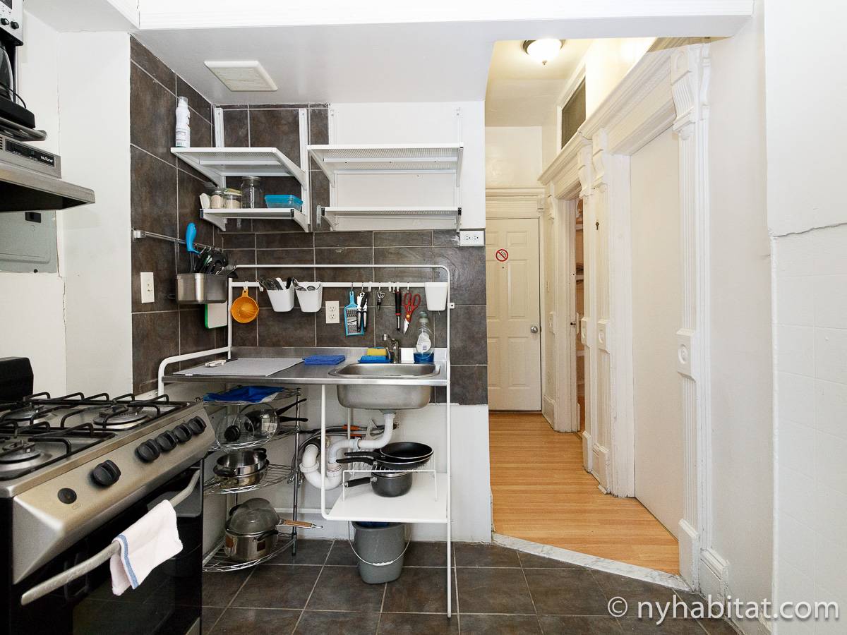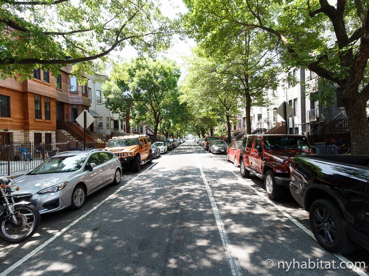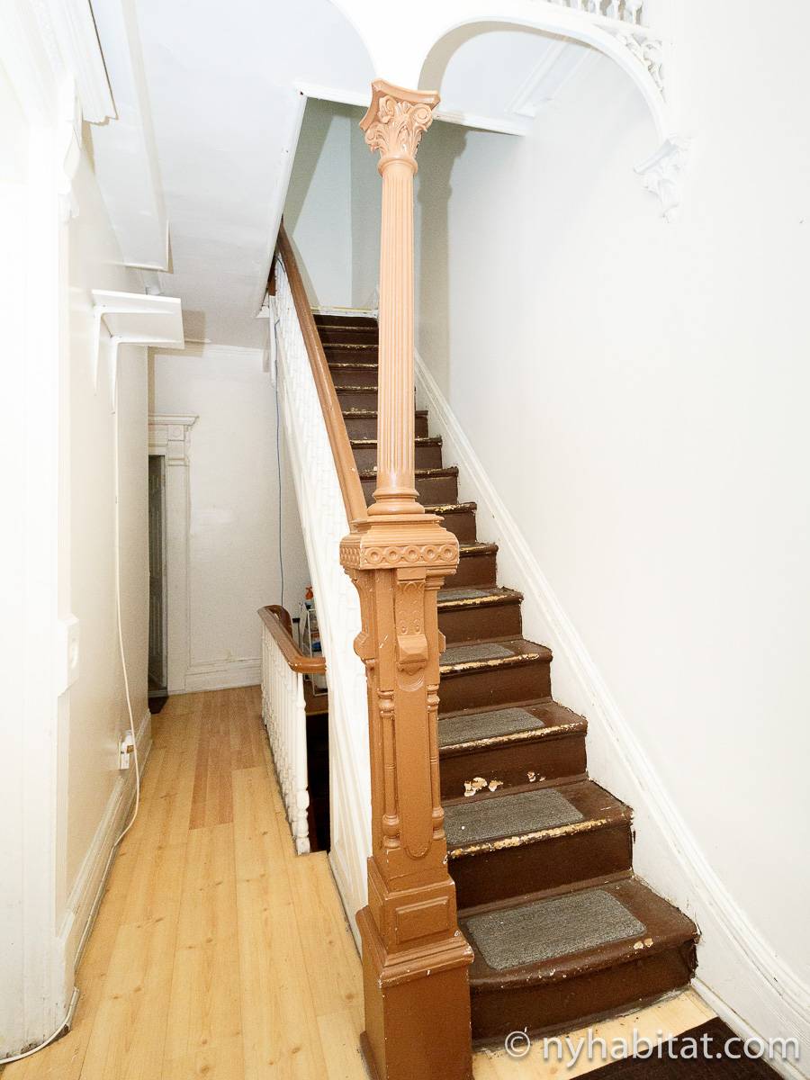 Die 2-Zimmer-Wohnung befindet sich in der Jefferson Avenue & Wilson Avenue auf der zweiten Etage (entspricht der ersten Etage in Europa) eines dreigeschossigen Reihenhauses.