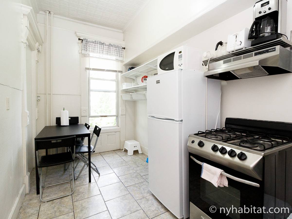 Die Wohngemeinschaft ist grundausgestattet mit modernen Möbeln, inklusive Hartholzböden und großen Fenstern. In der gut eingerichteten Küche gibt es einen kleinen Esstisch für romantische Abende sowie die notwendige Küchenausstattung. Im Wohnzimmer befinden sich ein Sofa sowie ein Kabelfernseher, die ausreichend Platz und Unterhaltung für Gäste in der WG bieten.