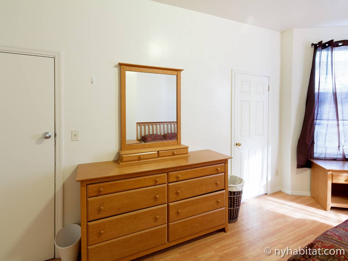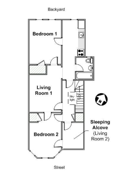 Die sparsam möblierte 3-Zimmer-Wohnung in Brooklyn liegt auf der Jefferson Avenue und Wilson Avenue auf der obersten Etage eines dreistöckigen Stadthauses ohne Fahrstuhl. Die Wohnung beinhaltet zwei Wohnzimmer, wobei ein Wohnzimmer als Schlafnische ausgestattet ist. Mittags erstrahlt jeder Raum in dem natürlichen Licht der vielen Fenster und des Oberlichts.