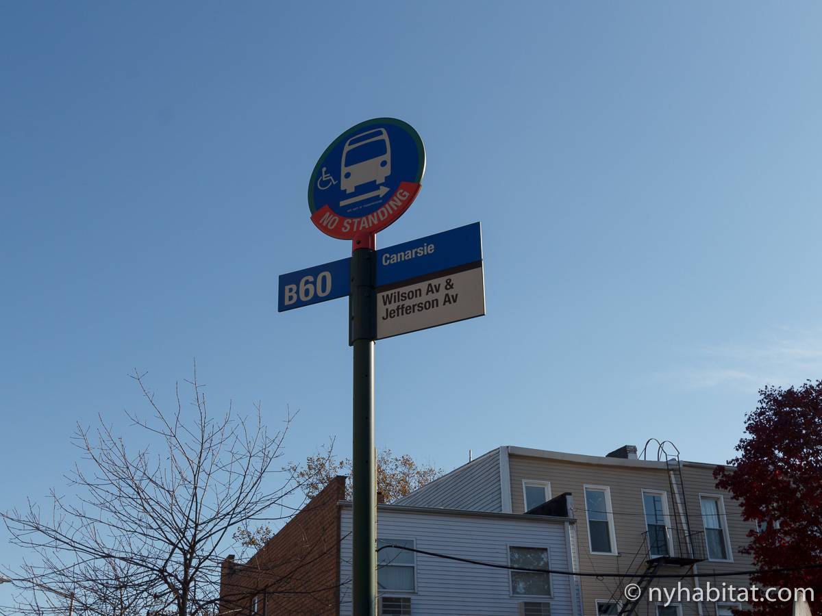 Für öffentliche Verkehrsmittel innerhalb Brooklyns oder in andere Bezirke New Yorks (einschließlich Manhattan) können Sie an der Halsey Street/Broadway Haltestelle die Linie J benutzen (850m). Zusätzlich können Sie zur Halsey Street/Wyckoff Avenue laufen, die die L Linie anbietet (1km).