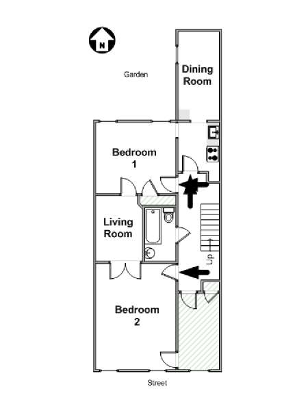 Bitte beachten Sie, dass der Flur, der die Schlafzimmer und das Badezimmer verbindet, auch zu den anderen Stockwerken/Wohneinheiten in diesem Brownstone-Gebäude führt. Siehe Grundriss.