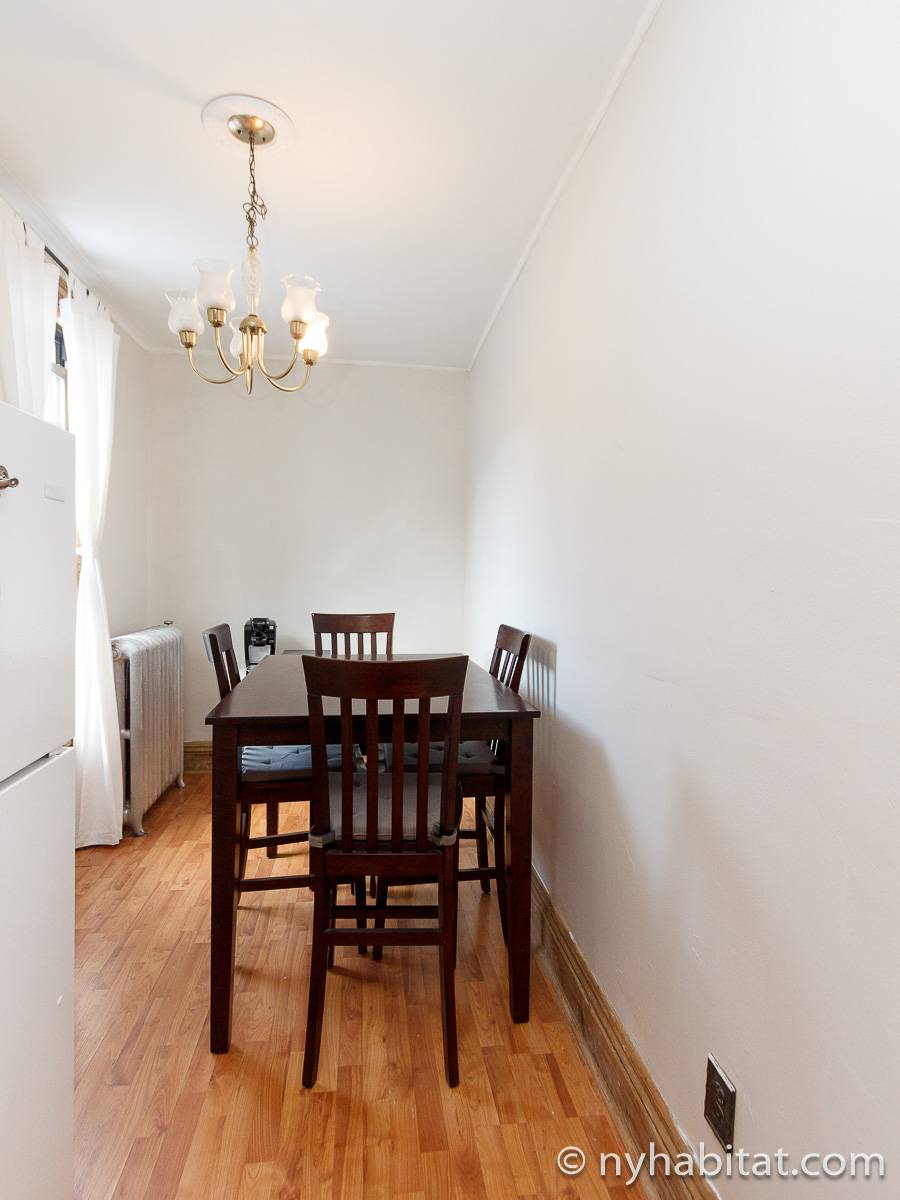 Diese 3-Zimmer-Wohnung verfügt über ein Wohnzimmer und einen Essbereich. Das Wohnzimmer ist komplett ausgestattet mit einem an der Wand montierten Flachbildfernseher, einem Stuhl, einem Schreibtisch, einem Bücherregal und einem Dachfenster als Tageslichtquelle. Das Esszimmer besitzt einen Esstisch für vier Personen. Von hier aus gelangt man in die separate Küche. Die Küche ist mit einem Herd mit Backofen, einem Kühlschrank und einem Gefrierschrank ausgestattet, damit Sie Ihre Mahlzeiten bequem zubereiten können.
