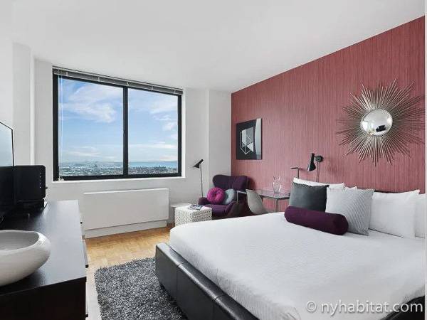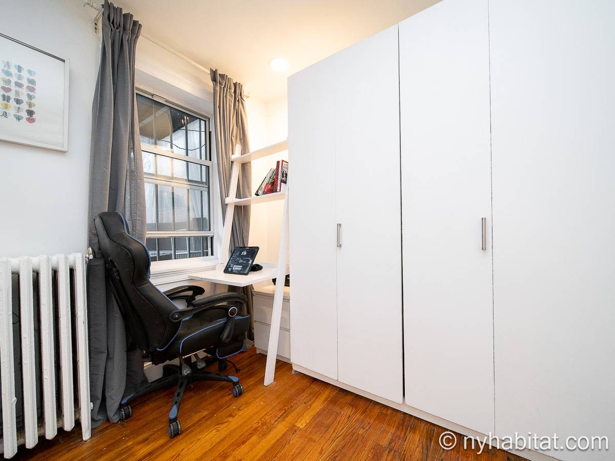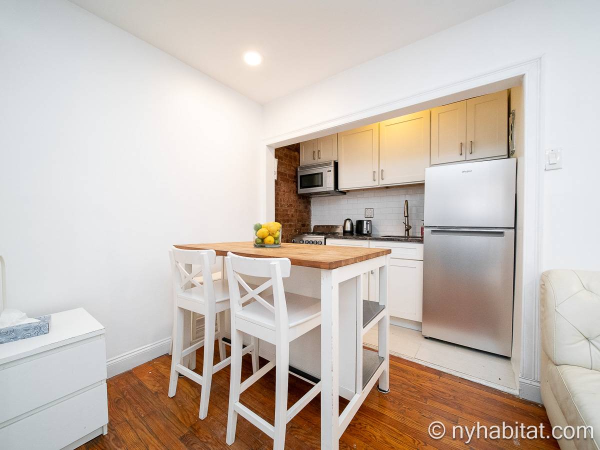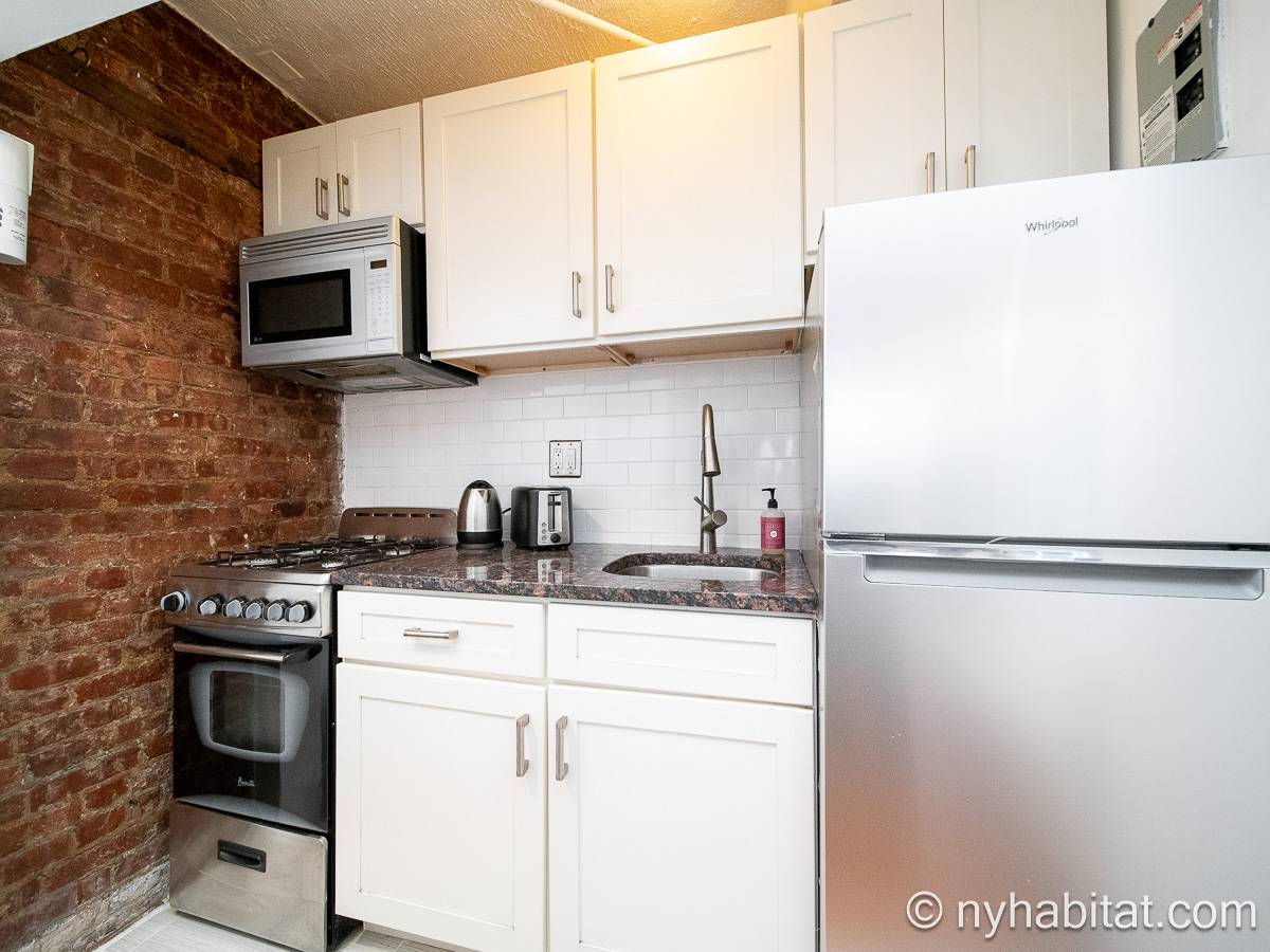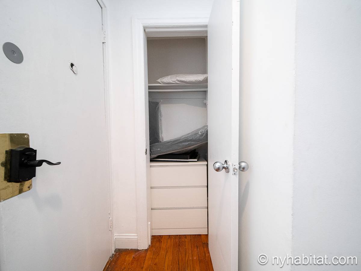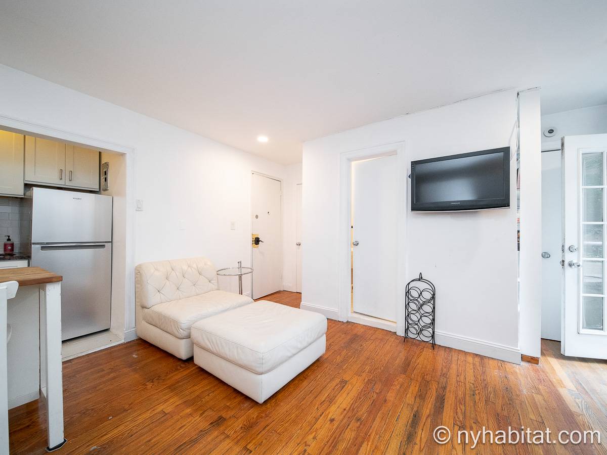 Diese UNmöblierte Wohnung besitzt eine klassisch-schlichte Einrichtung mit Hartholzböden und zwei großen Fenstern mit Schutzvorrichtungen.Neben dem Esstisch befindet sich die moderne und funktionale Küche mit einem Kühlschrank, Gefrierschrank, Kaffeemaschine, Mikrowelle und einem Toaster. Im Schrank gibt es ausreichend Stauraum. Das Badezimmer dieser Mietwohnung bietet eine Badewanne, Dusche, WC und Handtücher.