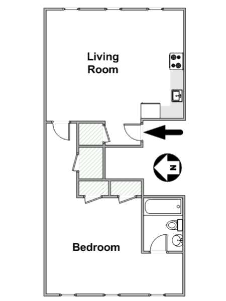 In dieser möblierten 2-Zimmer-Wohnung leben Sie in einem eher privateren Brownstone, haben aber gleichzeitig die Vorzüge des modernen Stadtbezirks Brooklyn. Diese Wohnung befindet sich im 3. Stock (entspricht in Europa dem 2. Stock) eines Reihenhauses und bietet alle Qualitäten, die man sich wünscht: die Hartholzböden, den dekorativen Kamin und die großen nach Osten ausgerichteten Fenster. Das Alter des Gebäudes aus der Vorkriegszeit ist nur an der Fassade erkennbar, da die Wohnung renoviert wurde, um diese an aktuelle Anforderungen anzupassen. Die durch eine Trennwand von dem Wohnbereich abgetrennte Küche verfügt über Elektrogeräte aus Edelstahl, einen Geschirrspüler und viel Arbeitsfläche. Das Schlafzimmer ist mit einem majestätischen Bettrahmen mit Pfosten ausgestattet. Es gibt mehrere Schränke, somit ist ausreichend Platz für all Ihre Sachen vorhanden. Im Schlafzimmer befindet sich eine kleine Leseecke, die zu einem kompletten Badezimmer mit antiken Elementen wie einem bemerkenswerten Waschbecken führt.