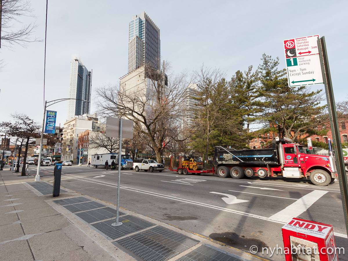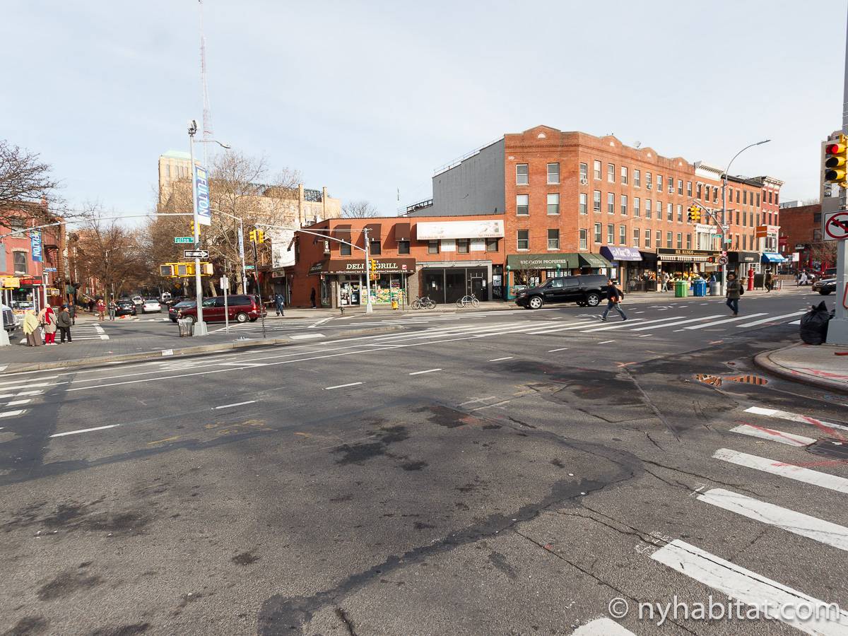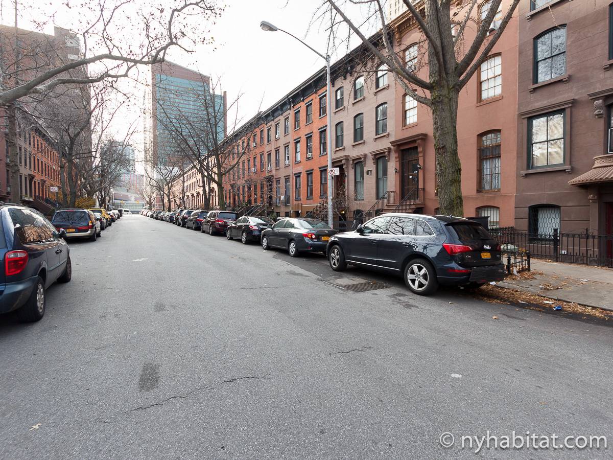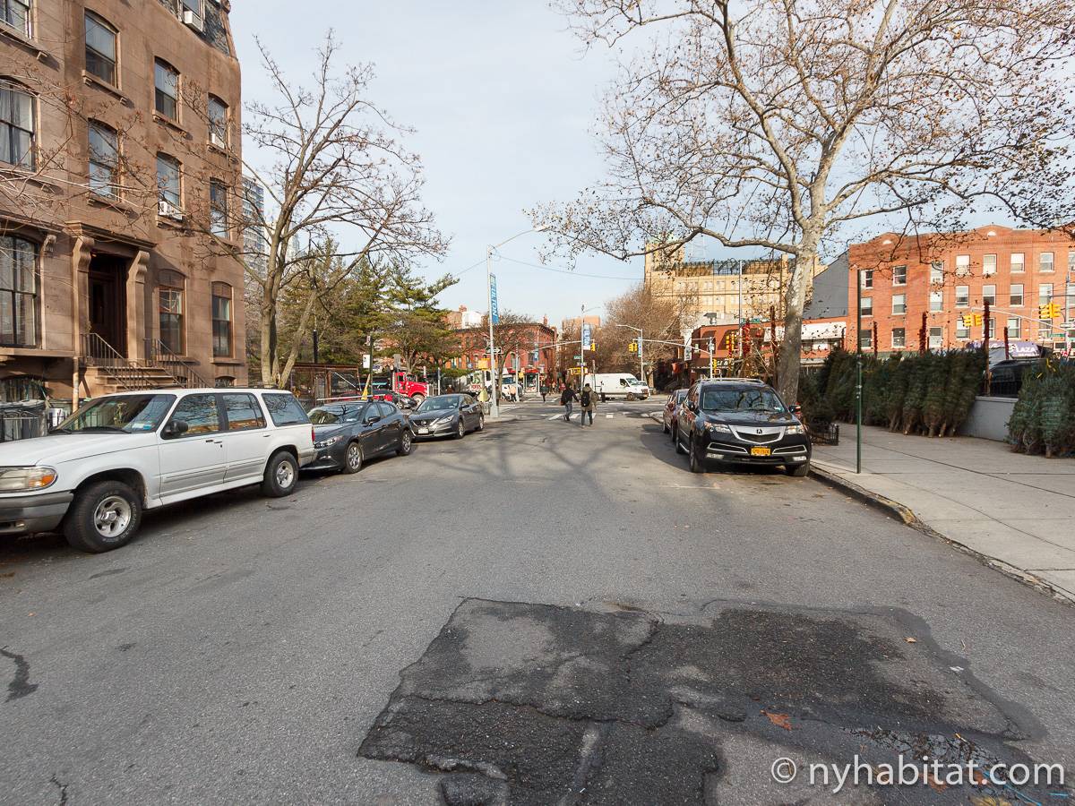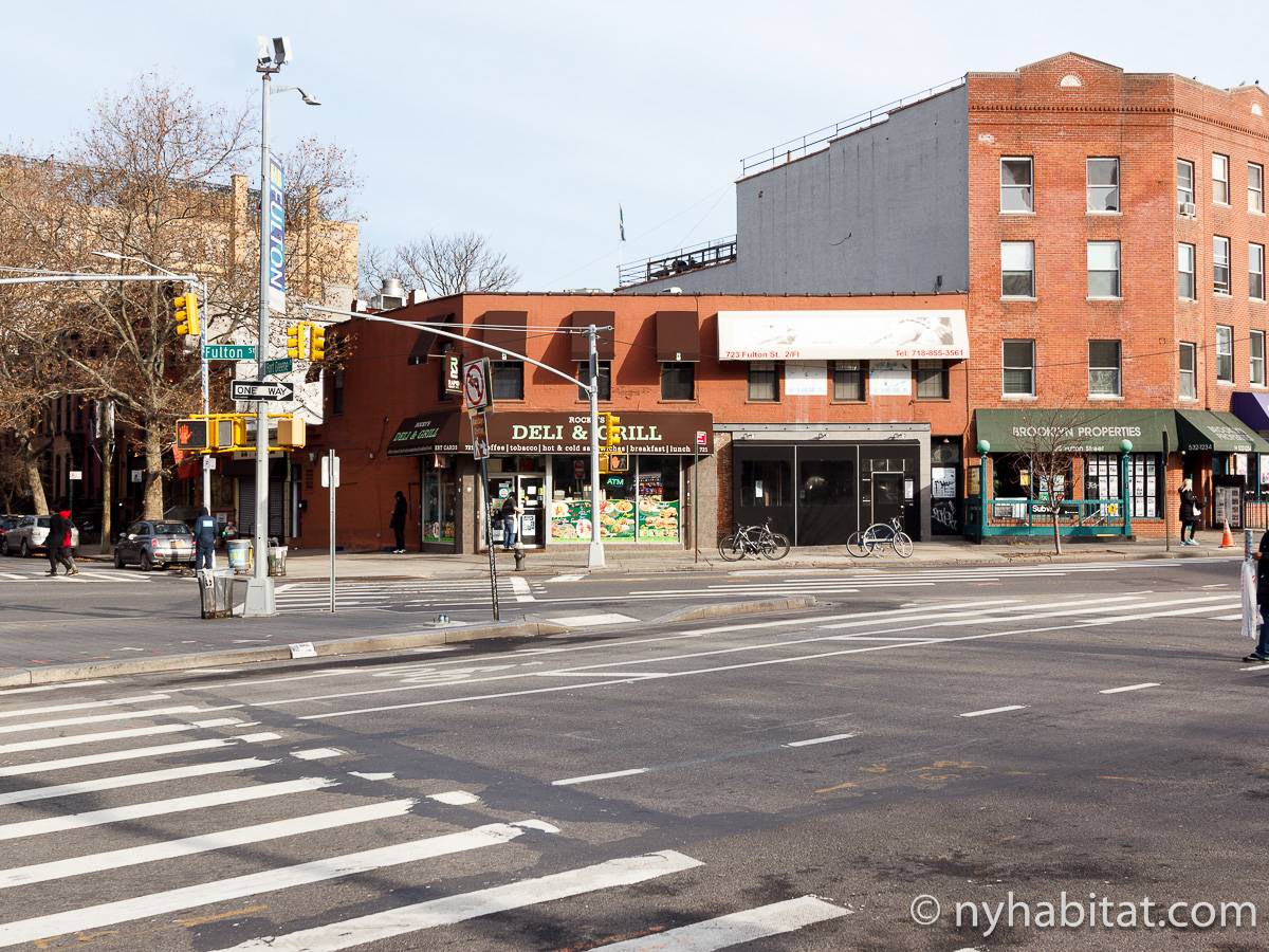 Die Mietwohnung befindet sich am Fort Greene Place und der Lafayette Avenue – und zwar an dem Ort, wo Fort Greene auf die Stadtviertel Prospect Heights und Clinton Hill trifft. Außerdem sind Sie von der Wohnung aus nur zwei Häuserblöcke von der Atlantic Avenue und dem Barclays Center entfernt, wo es eine Reihe von Geschäften wie Target und Best Buy gibt. Dort befindet sich auch ein wichtiger Verkehrsknotenpunkt von New York City für Central Brooklyn – die Linien 2, 3, 4, 5, B, D, N, Q, R und die Long Island Railroad sind alle hier erreichbar. Zwei Häuserblöcke östlich von der möblierten Wohnung können Sie die Linie G an der U-Bahn-Station Fulton Street nutzen. Südöstlich finden Sie Linie A an der U-Bahn-Station Lafayette Ave.