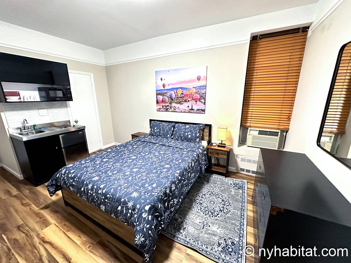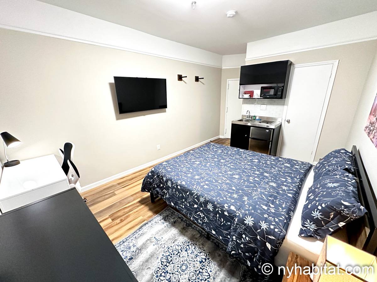 Saubere, luftige Studiowohnung. Zwei große Fenster, die zur 14th Street hin ausgerichtet sind und viel natürliches Licht in die Wohnung lassen. Badezimmer und Dusche funktionieren gut und bieten genug Platz. Die wöchentliche Reinigung für $25/Woche ist das Geld normalerweise wert - sehr nette Putzfrauen, die eine tolle Arbeit leisten. Die Steppdecken und Kissen waren stilvoll, cool und gemütlich. Matratze war in Ordnung. |