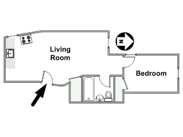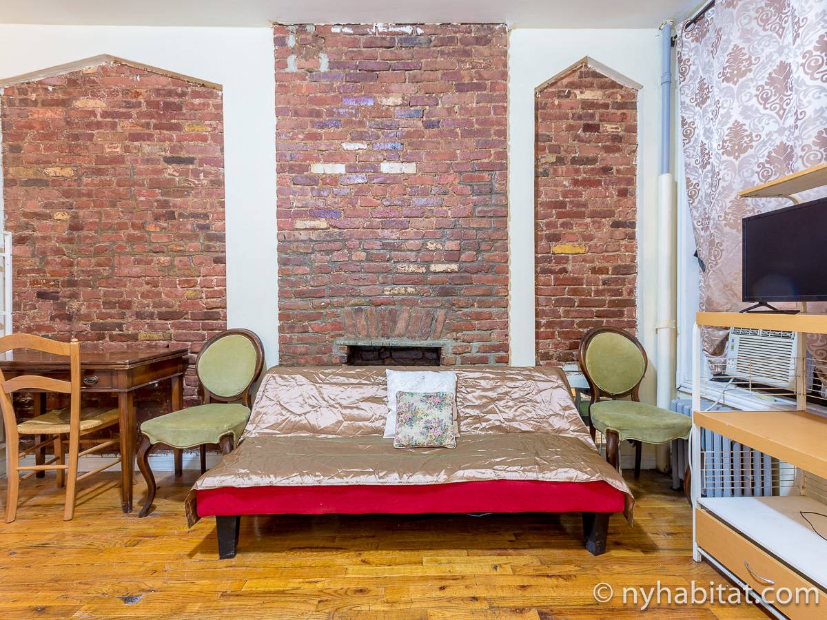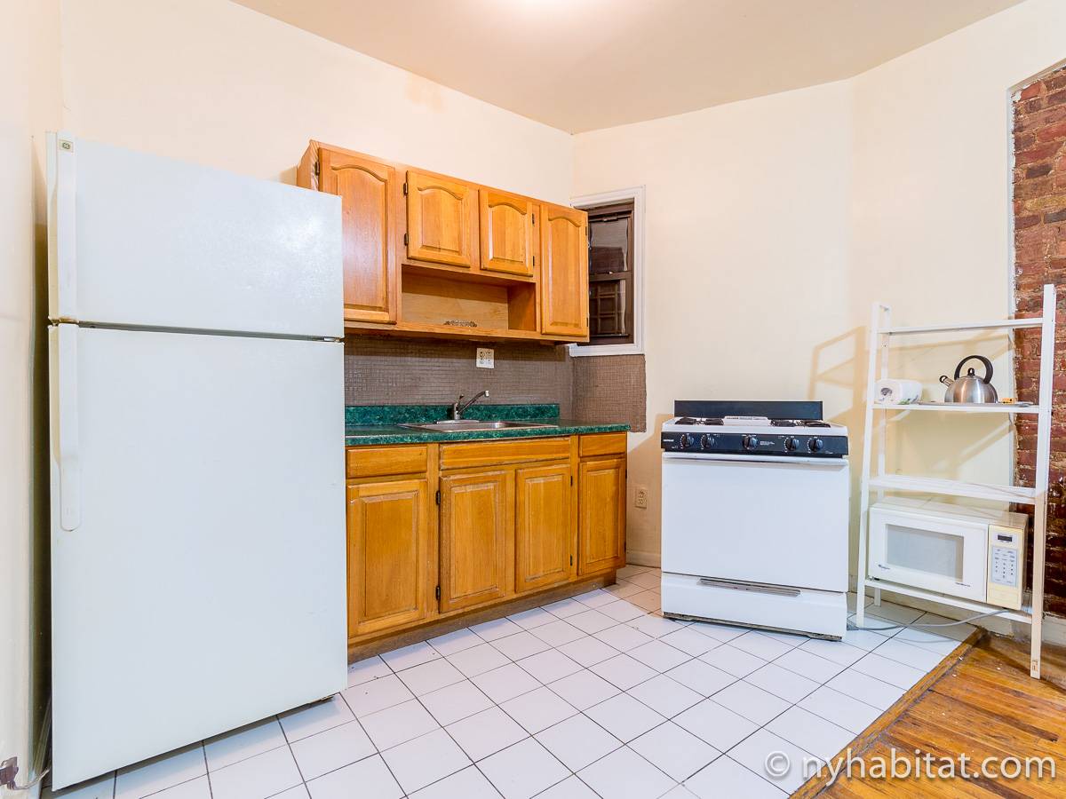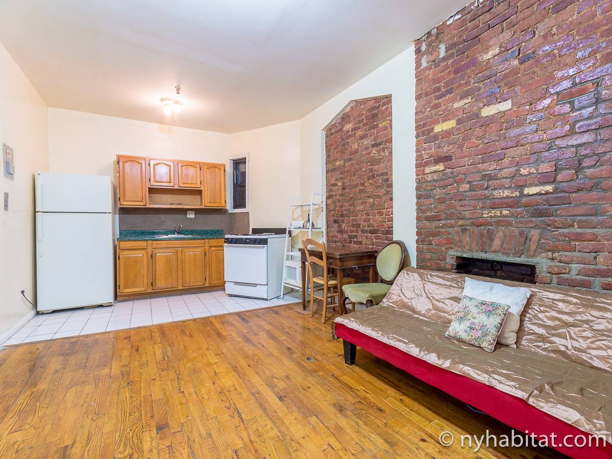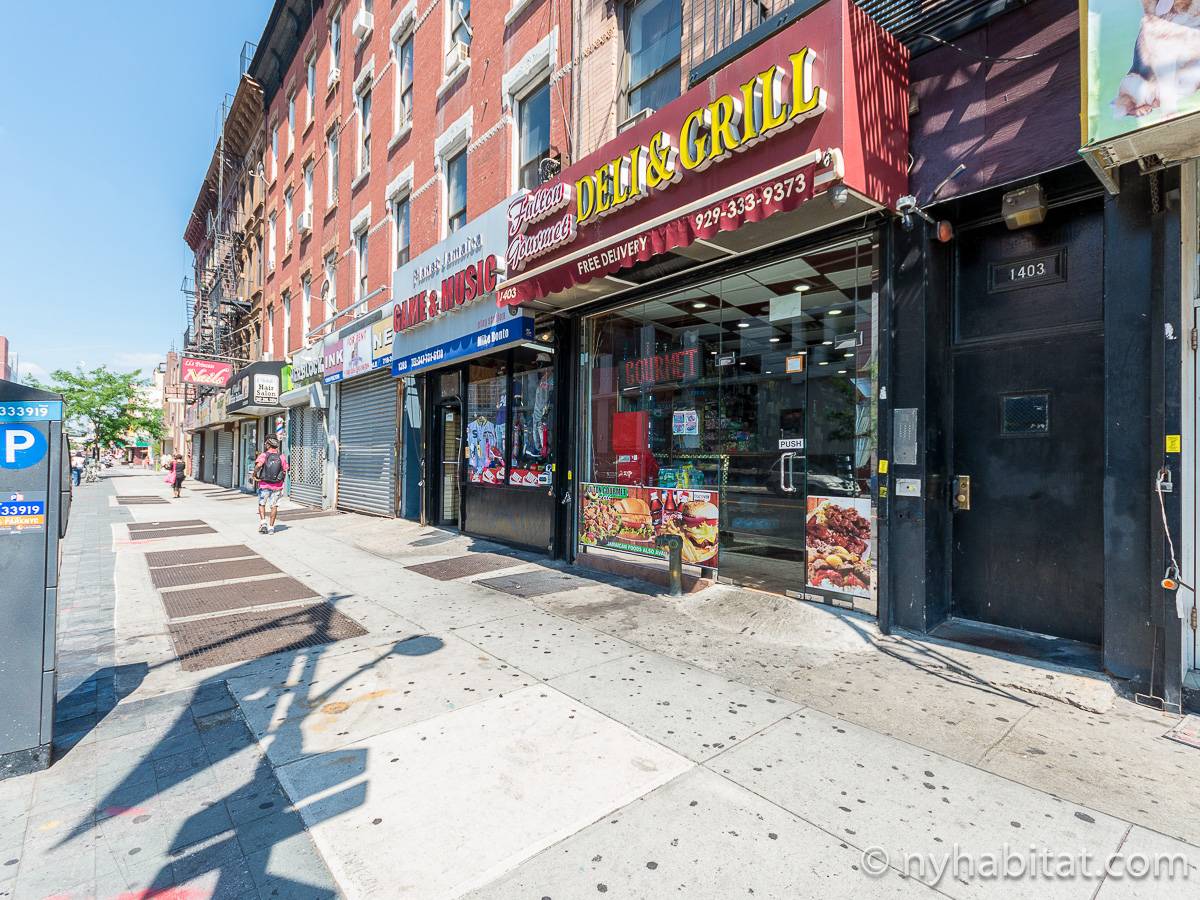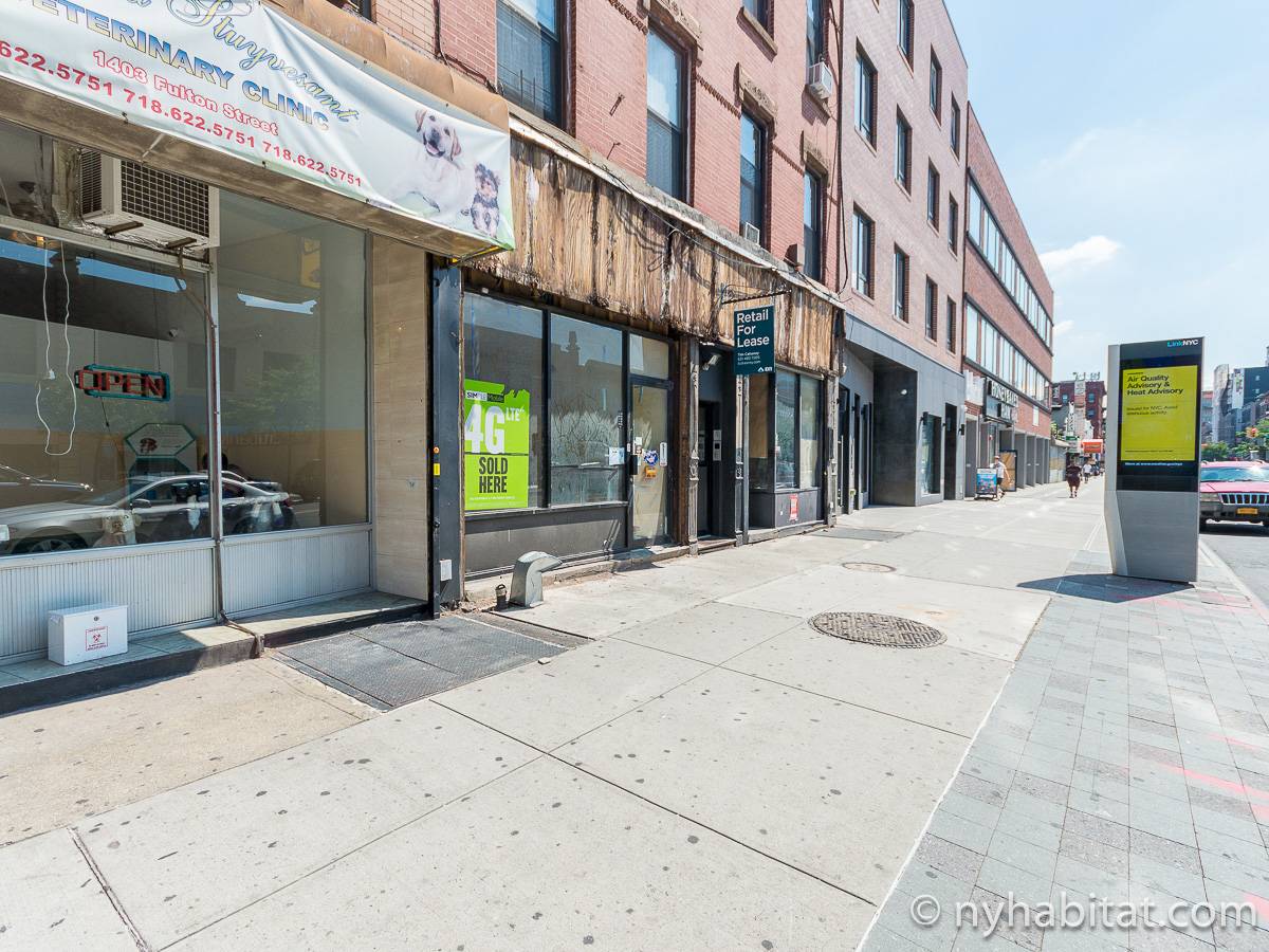 In Brooklyn, an der Ecke Fulton Street & Marcy Avenue, heißt Sie diese voll möblierte Wohnung willkommen. Sie befindet sich im 2. Stock (entspricht in Europa dem 1. Stock) eines Hochhauses, das in Bedford-Stuveysant liegt.