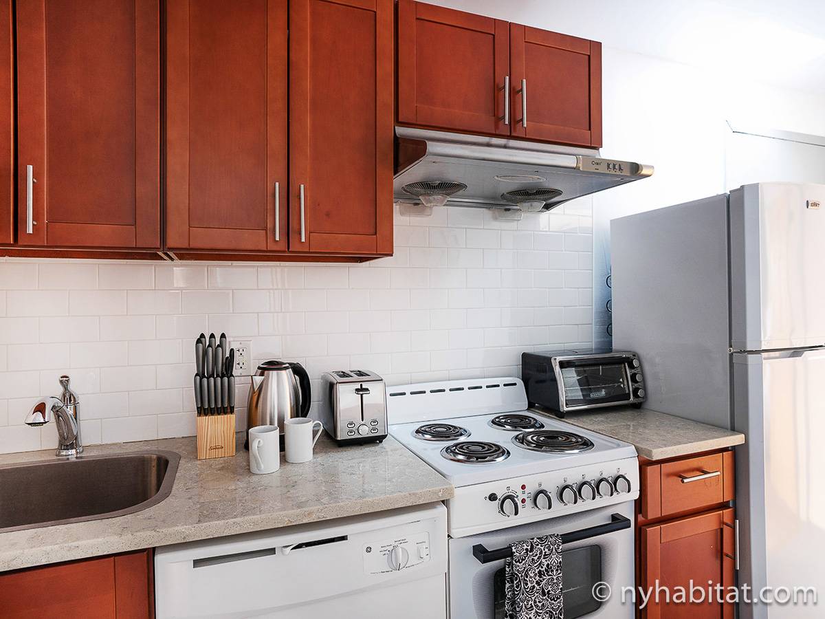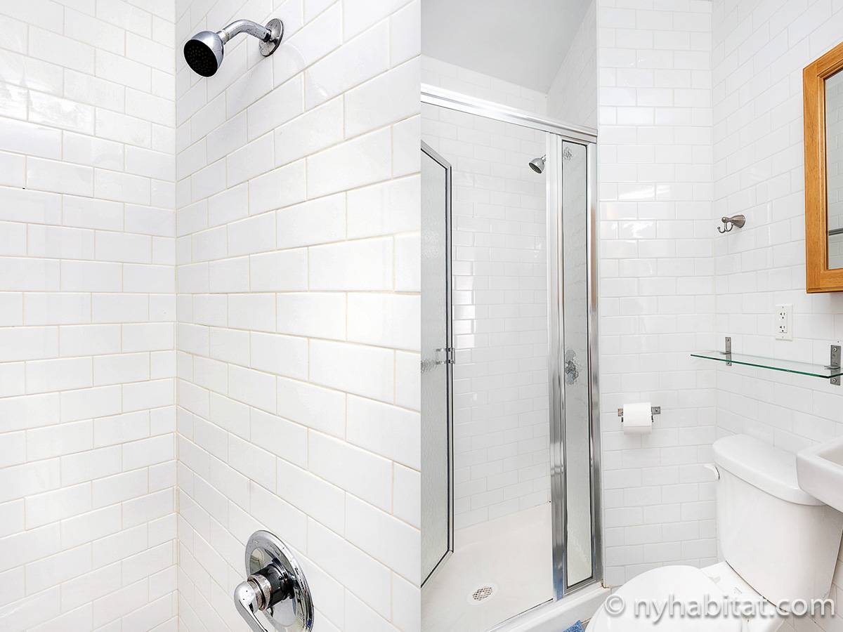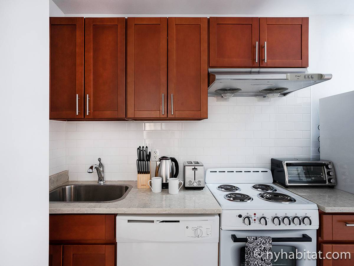 Beim Betreten dieser voll möblierten Mietwohnung finden Sie durchgehende Parkettböden, ein zeitgenössisches Design und reichlich Tageslicht. Ein Doppel-Sofabett steht vor einem wandmontierten Fernseher und ein kleiner Esstisch ist auch verfügbar, damit Sie daheim essen können. Die Küche bietet Ihnen alle nötigen Kochutensilien und Geschirr, einen Geschirrspüler, einen Toaster und eine Kaffeemaschine. Im Schlafzimmer finden Sie ein Doppelbett und eine Kommode mit Schubladen für Stauraum. In dieser Wohnung kommen Sie in den Komfort, zwei separate Badezimmer zu haben. Vom Schlafzimmer aus kann man das private Badezimmer betreten, während das andere Badezimmer vom Wohnzimmer aus erreichbar ist – ein Layout, das noch mehr Privatsphäre ermöglicht.