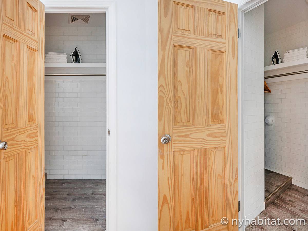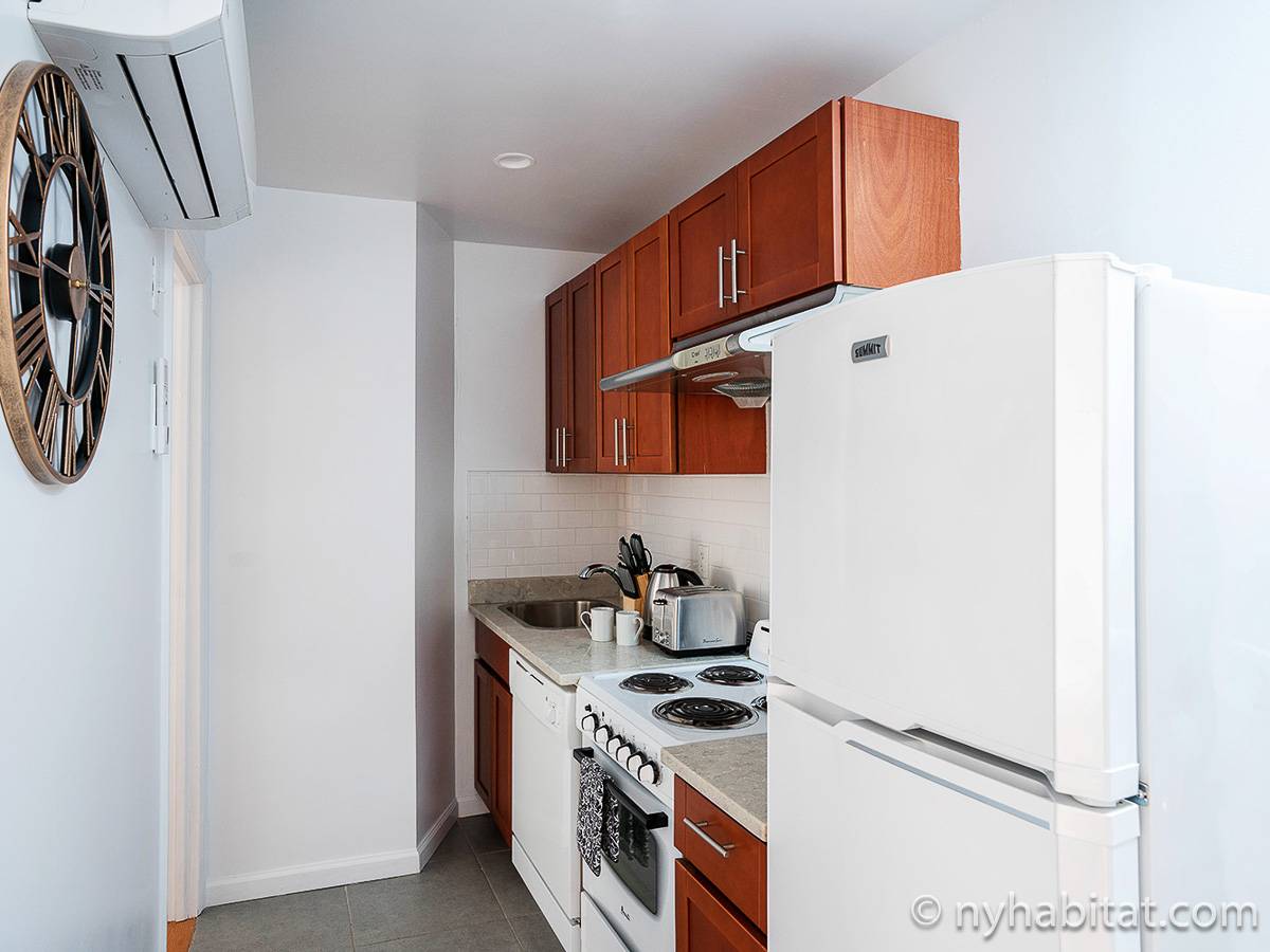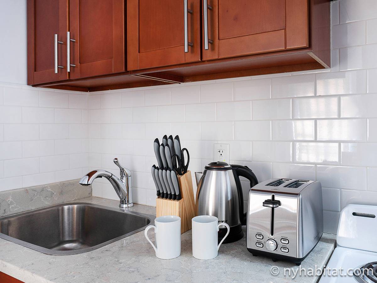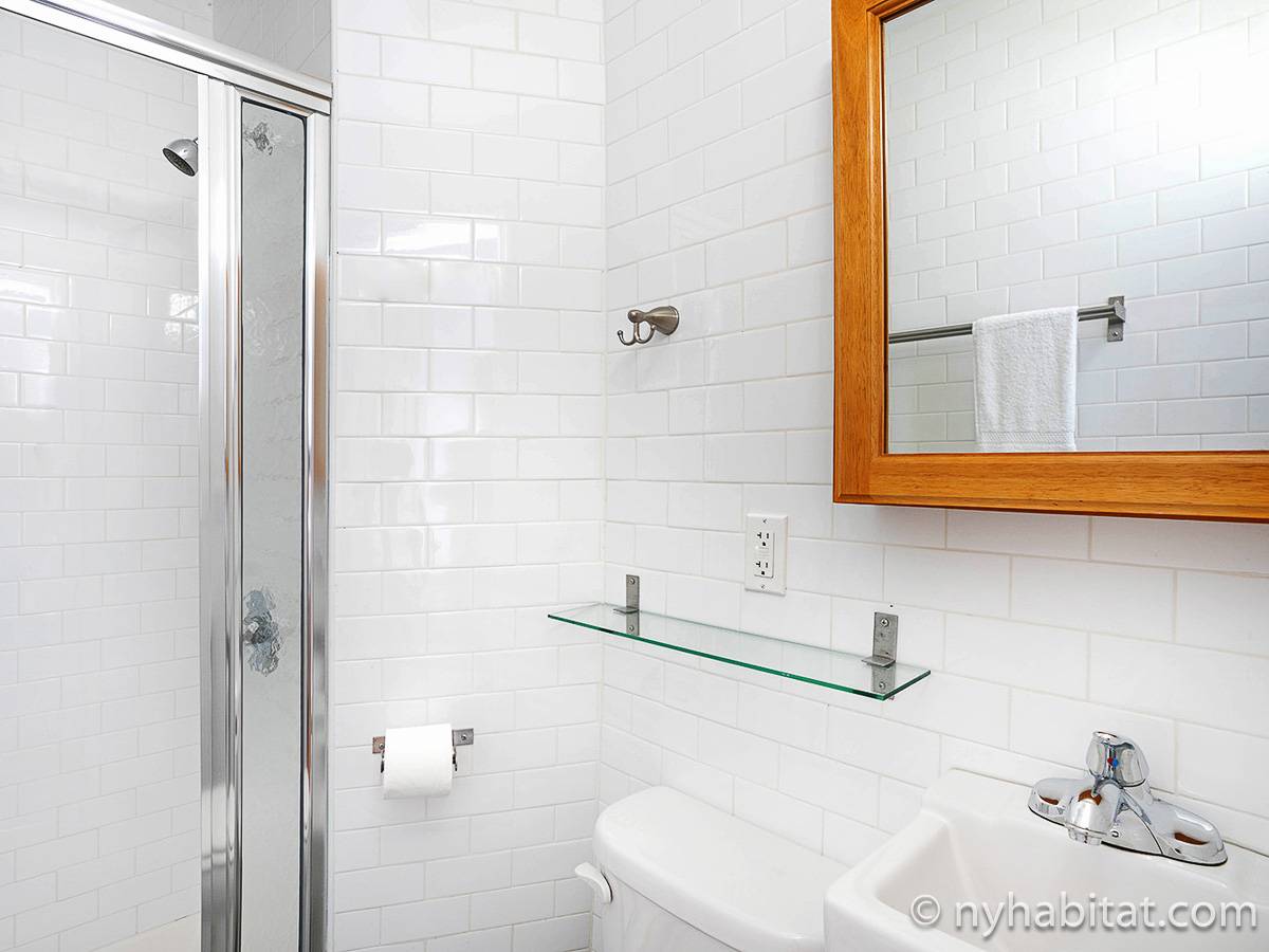 Beim Betreten dieser voll möblierten Mietwohnung finden Sie durchgehende Parkettböden, ein zeitgenössisches Design und reichlich Tageslicht. Ein Doppel-Sofabett steht vor einem wandmontierten Fernseher und ein kleiner Esstisch ist auch verfügbar, damit Sie daheim essen können. Die Küche bietet Ihnen alle nötigen Kochutensilien und Geschirr, einen Geschirrspüler, einen Toaster und eine Kaffeemaschine. Im Schlafzimmer finden Sie ein Doppelbett und eine Kommode mit Schubladen für Stauraum. In dieser Wohnung kommen Sie in den Komfort, zwei separate Badezimmer zu haben. Vom Schlafzimmer aus kann man das private Badezimmer betreten, während das andere Badezimmer vom Wohnzimmer aus erreichbar ist – ein Layout, das noch mehr Privatsphäre ermöglicht.